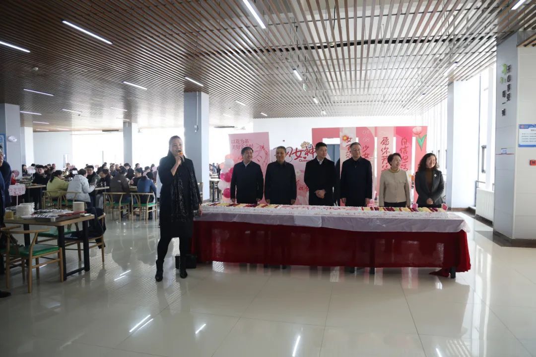 3月7日中午,装饰一新的职工食堂,处处洋溢着节日的喜庆氛围,一场温馨的庆“三八”活动拉开帷幕。学校领导班子成员与女教职工一同欢庆节日,活动现场暖意融融。活动由工会主席兼妇委会主任李春红主持,她向全体女教职工致以最诚挚的节日问候。