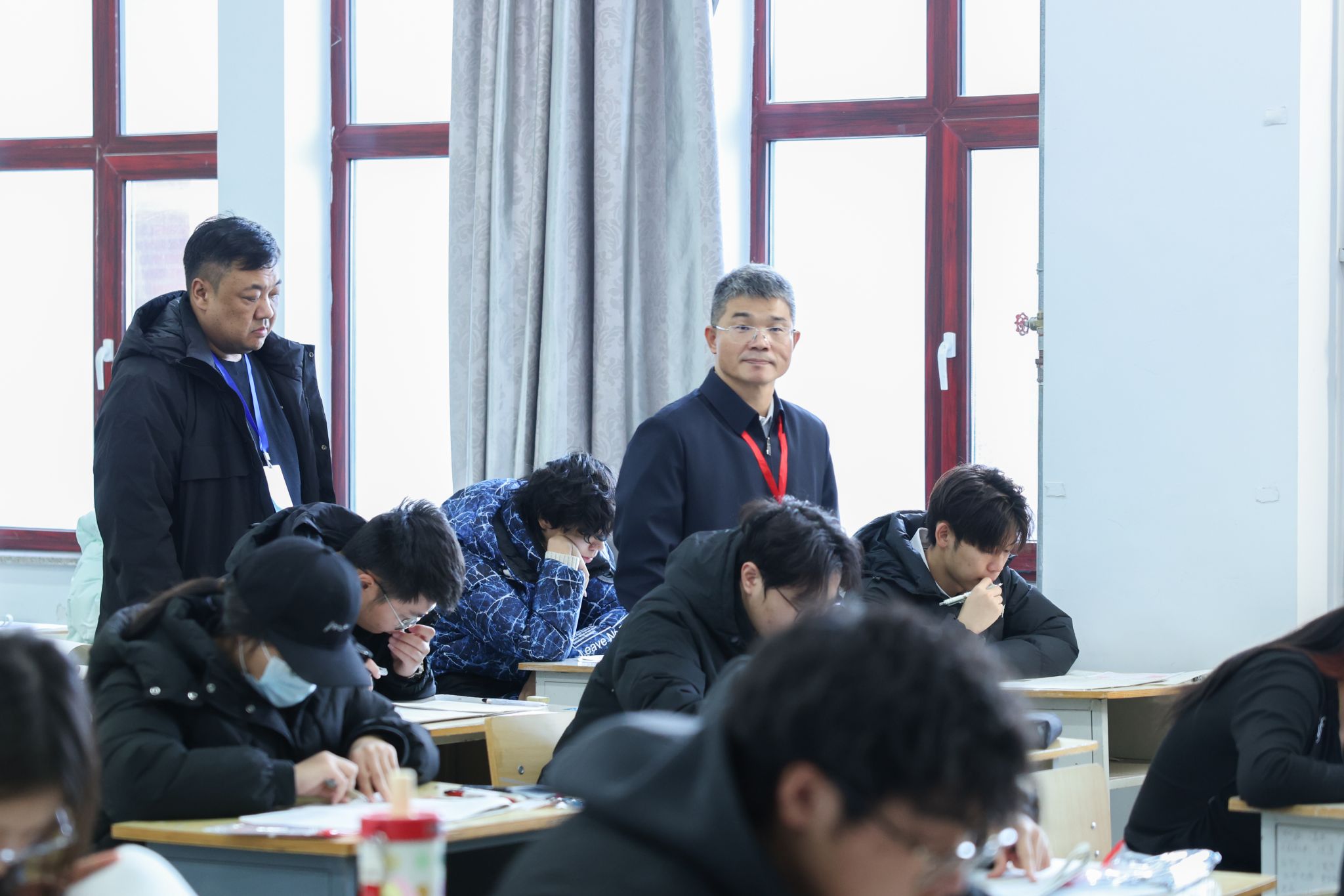 本次期末考试共安排场次797场,涉及考生32029人次,抽调监考教师1742人次。为实现巡考全覆盖,学校建立校—院二级巡考机制,构建多部门协同督导格局。党委书记张吉锋、党委副书记、校长李宝永等校领导带队深入考场,全面检查考试组织整体情况;教务处、学生工作处、教学质量监控与评价中心等部门围绕考场布置、监考教师履职、学生考试纪律及考场应急处置准备等核心环节开展检查。各教学单位成立院级巡考小组,对本学院(部)考试情况开展针对性检查,形成校院联动、全域覆盖的巡考工作体系。巡考小组第一时间向相关教学单位反馈问题并督促整改,确保各类不规范情况即时清零。从巡考结果来看,各考场秩序井然,监考教师认真履职,考生遵规守纪,应急处置预案完备,各项保障措施落实到位,考风考纪整体良好。