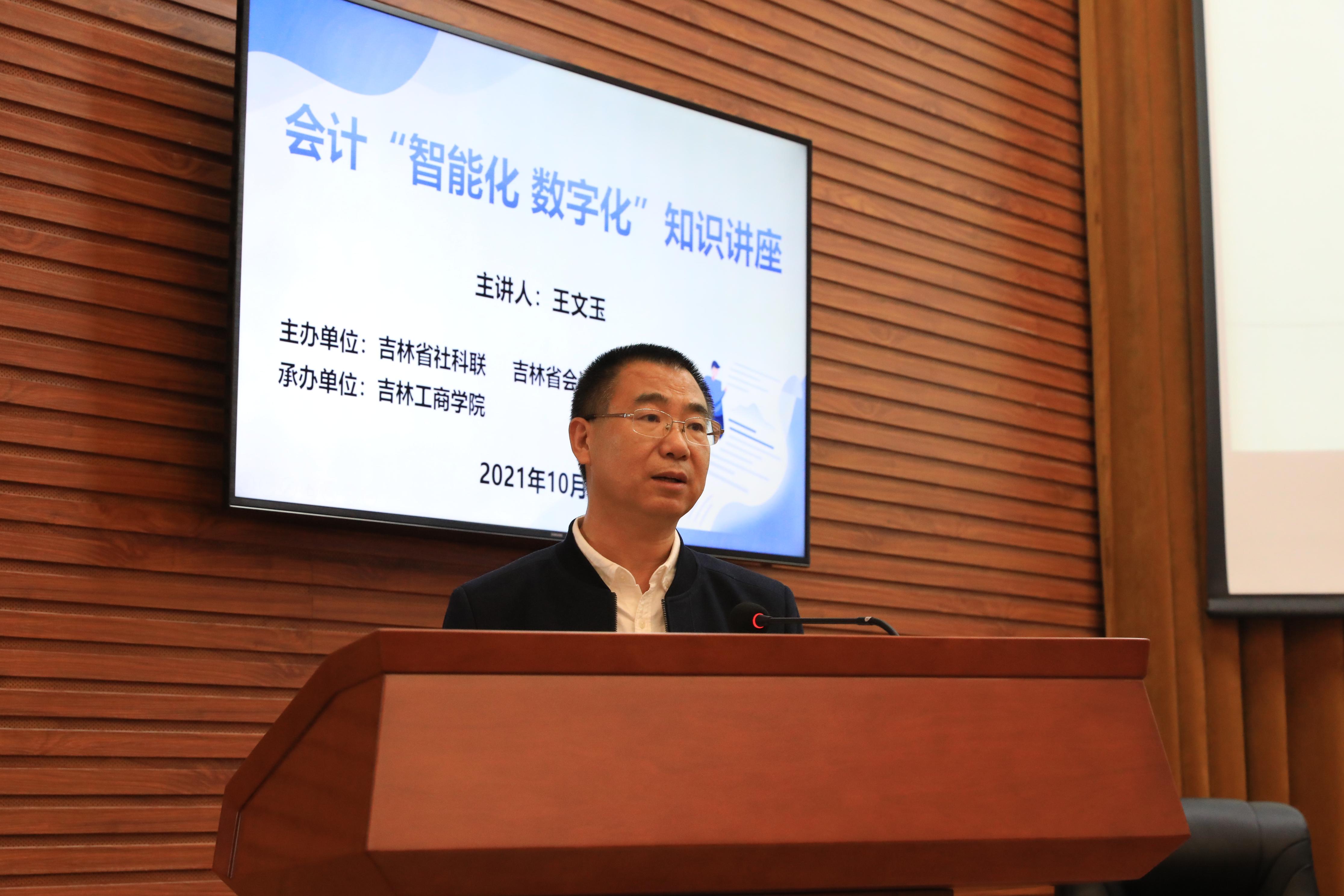 10月13日吉林省会计学会科普周活动暨会计“智能化 数字化”知识讲座在我校二教429举行。我校党委常委 副校长刘君义,吉林省财政厅二级巡视员王文玉,吉林省社科联科普处处长王峰,吉林省会计学会副会长兼秘书长刘贺家,吉林工商学院实验实训管理中心主任孙桂娟,以及会计学院全体教师和2020级本科部分学生出席了会计讲座活动。李长山副院长主持了讲座活动。
