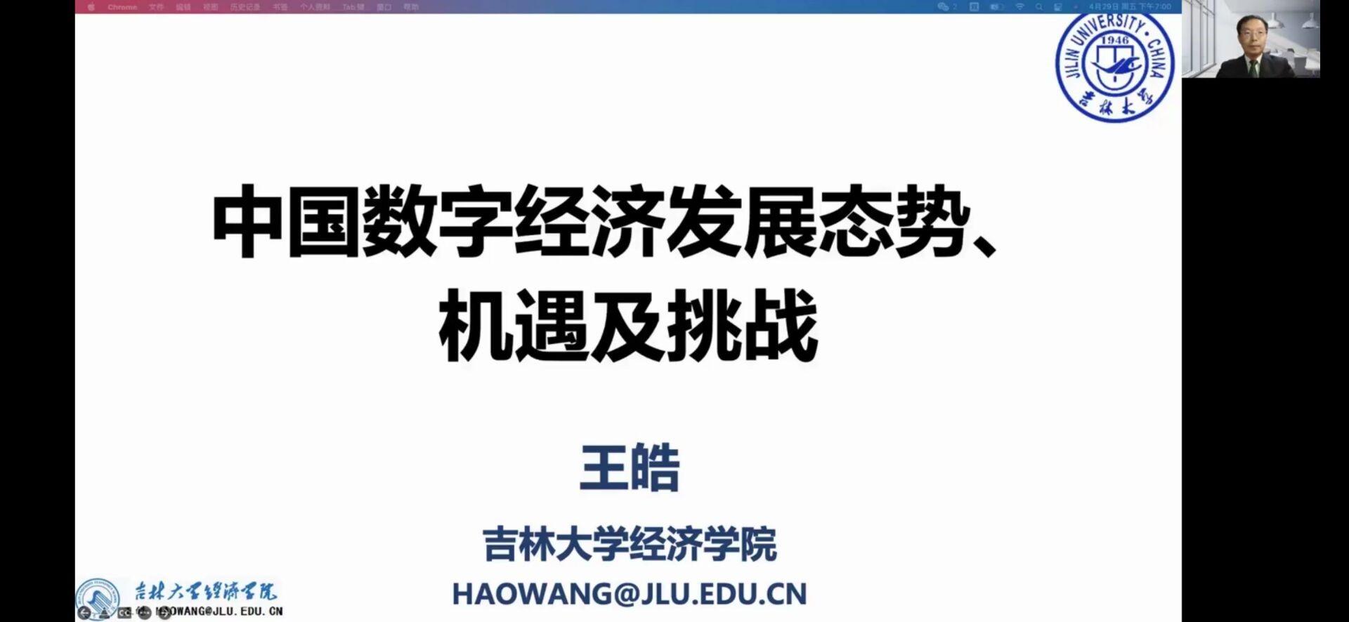 4月29日下午,为使我校教师在居家办公期间,系统的了解数字经济前沿理论知识,持续为自身学术研究赋能,更好地开展科学研究工作,特邀请吉林大学量化金融研究中心副主任王皓博士以线上会议的方式为我校教师作“中国数字经济发展态势、机遇及挑战”专题学术讲座。讲座由科研处处长阚君满主持。