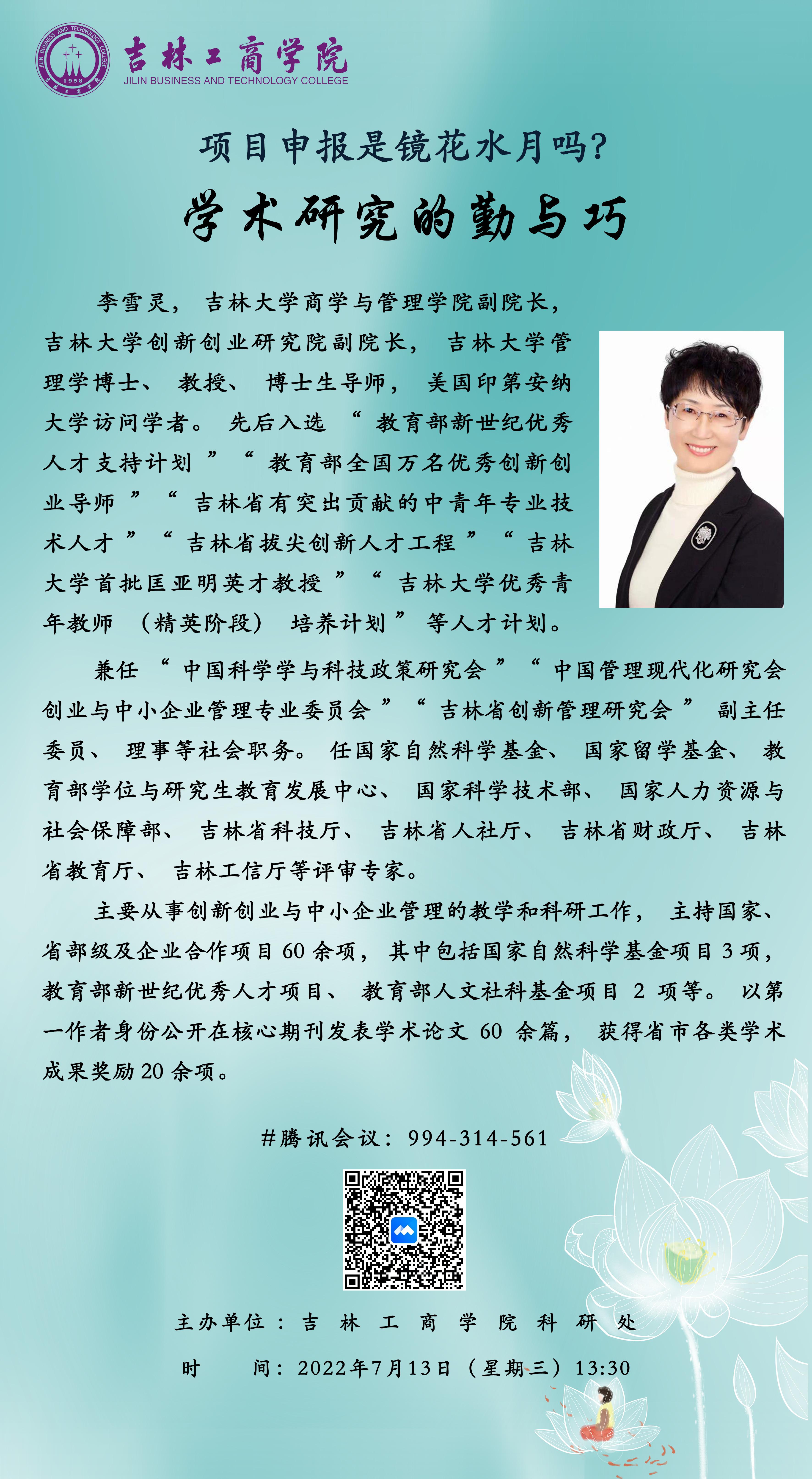 上一条:吉林大学李雪灵教授应邀作“学术研究的勤与巧”专题学术讲座