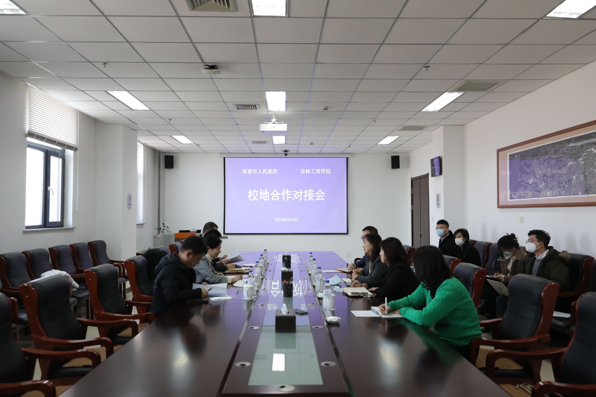 2月22日,我校与珲春市人民政府校地合作对接会在我校综合办公楼702会议室召开。珲春市政府副市长高英子、珲春市教育局局长王云鹏、珲春市政府教育督导室主任徐大冬、珲春市教育局办公室主任崔永彬,我校副校长董本云、教务处处长宋学红、旅游烹饪学院副院长孙汉杰、科研处张卓参加了对接会。