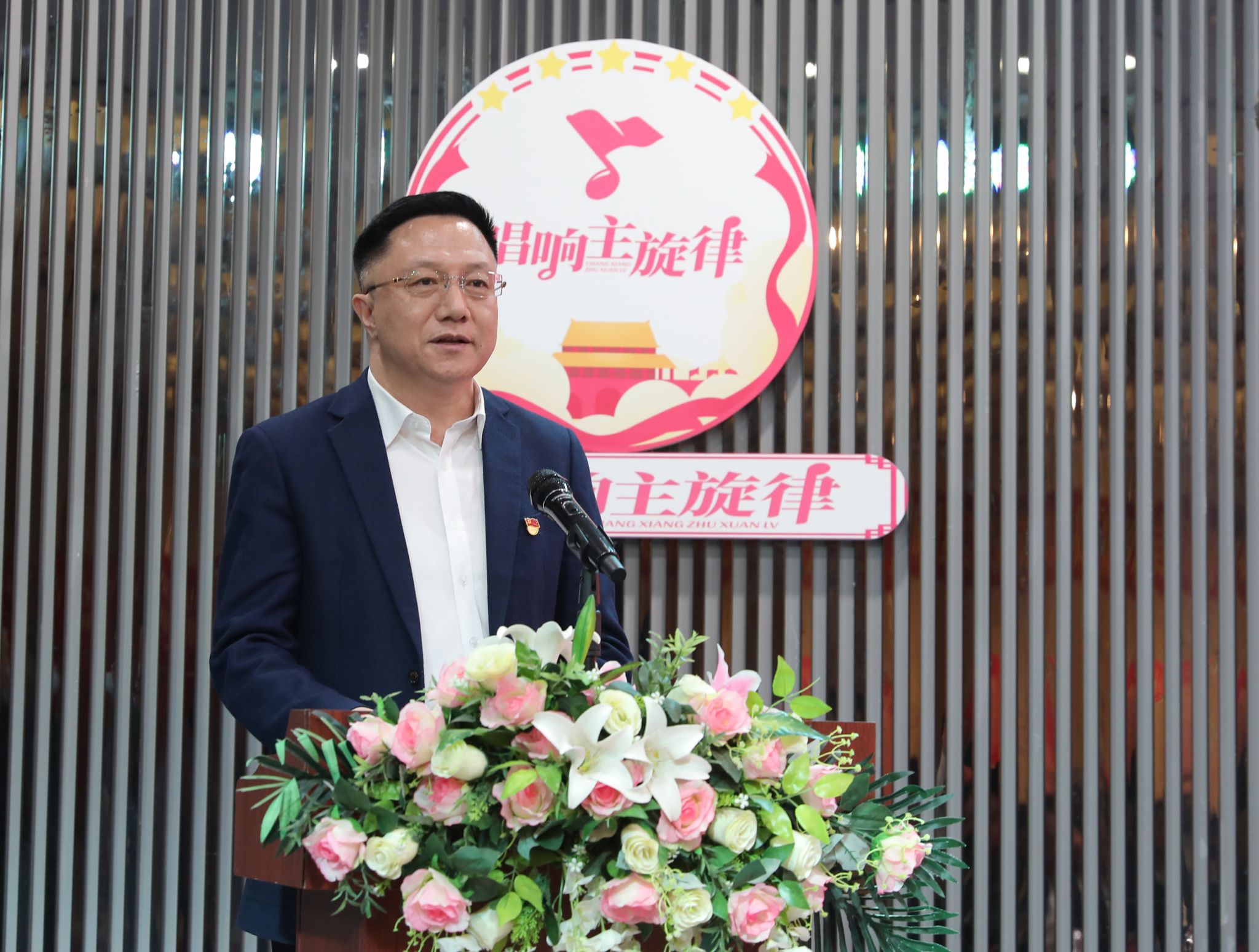 陈宝东致欢迎辞,他表示将致力于红色文化和新时代主旋律的宣传和推广,勇担培育和弘扬民族精神的社会责任。