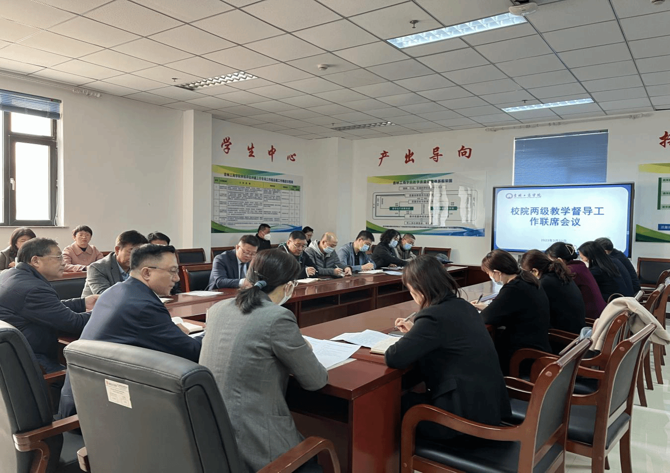 为加强校院两级教学督导沟通协作,提升我校教学督导工作水平,有序推进学校审核评估评建工作,3月22日,学校在综合办公楼325会议室召开了校院两级教学督导工作联席会议及督导培训会。副校长徐文出席会议。