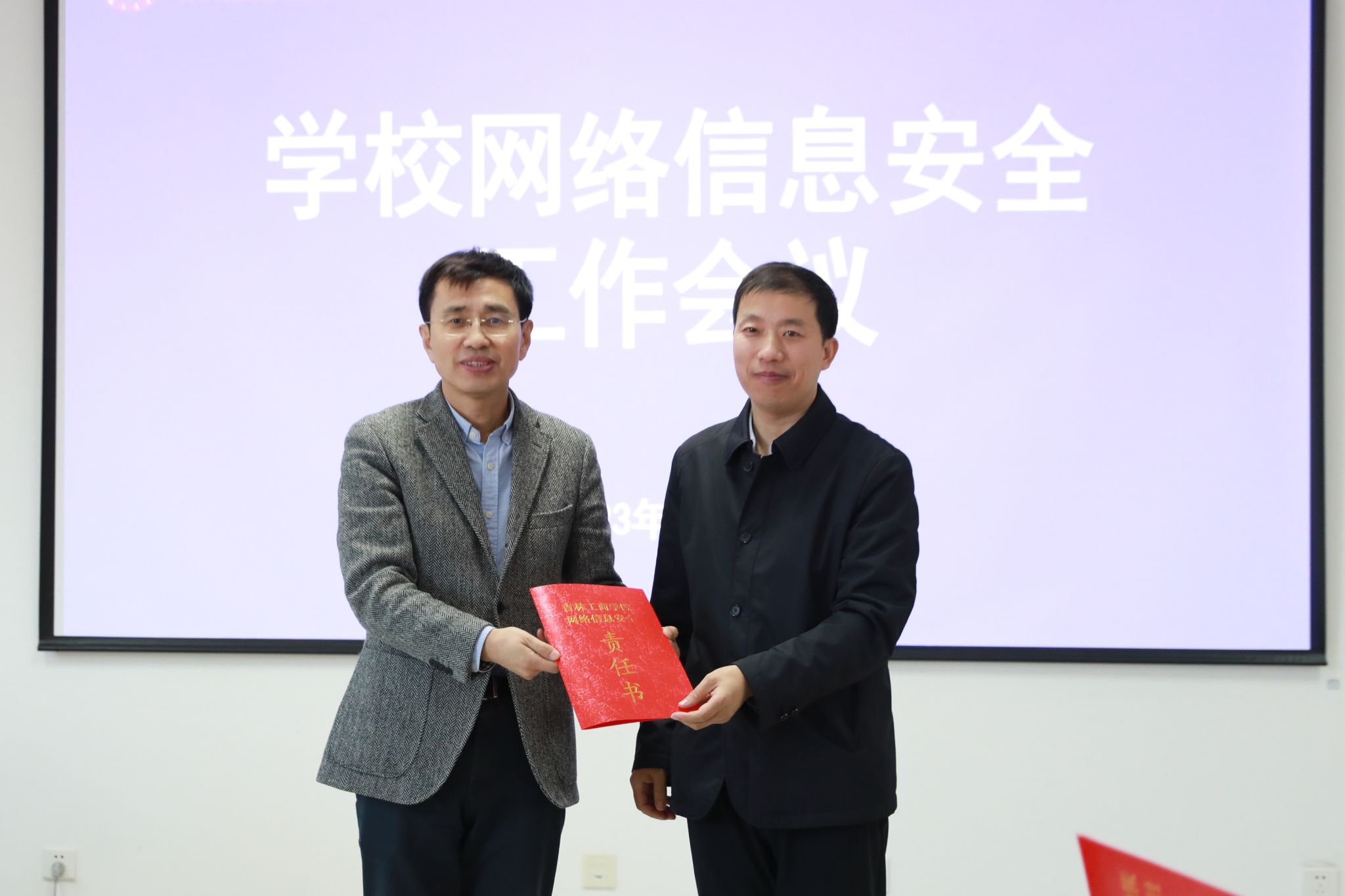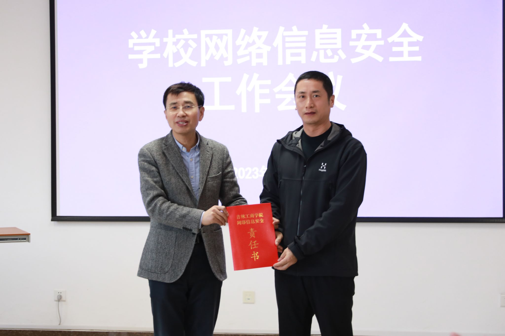 会上,各单位、部门代表向张越杰递交了2023年度网络信息安全责任书。