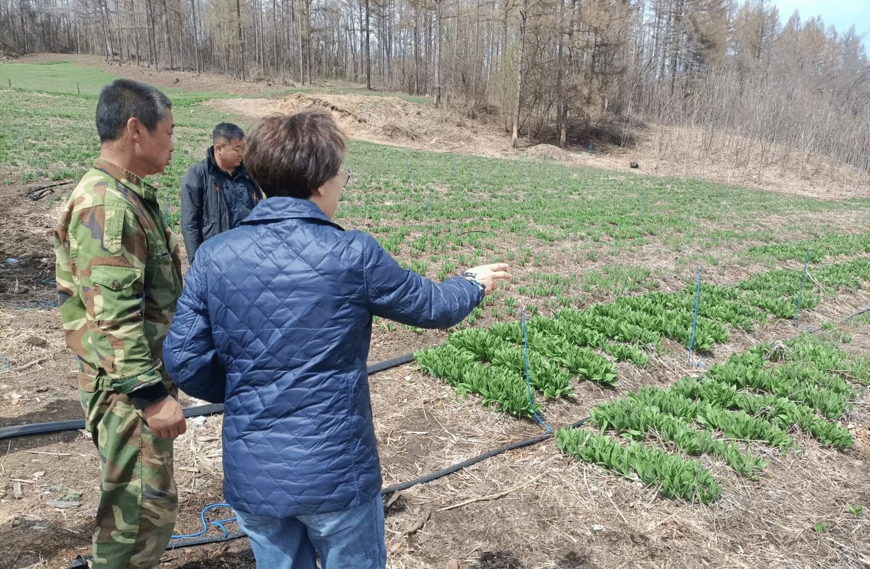 考察组一行踏查了当地三个特色寒葱种苗基地和种植基地,重点考察了我校合作的长白山寒葱科研基地。在田间地头,村镇相关负责人对当地寒葱的种植情况进行了现场讲解。种植大户现身说法,详细介绍了寒葱岭特有品种的育种、育苗经验和种植方法。考察组现场选取了上千株优质种苗,由驻村工作队带回水北村进行前期实验性种植。