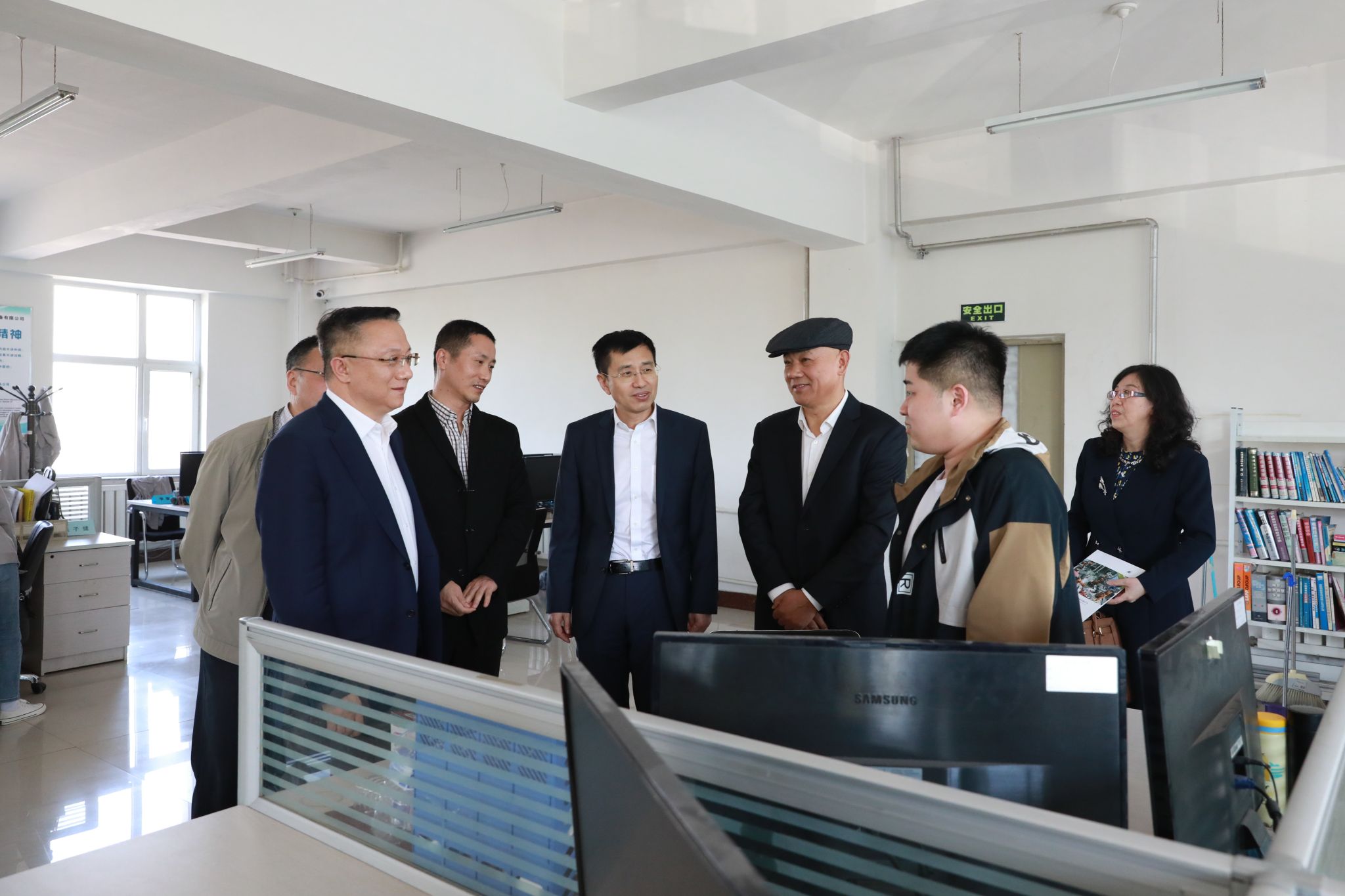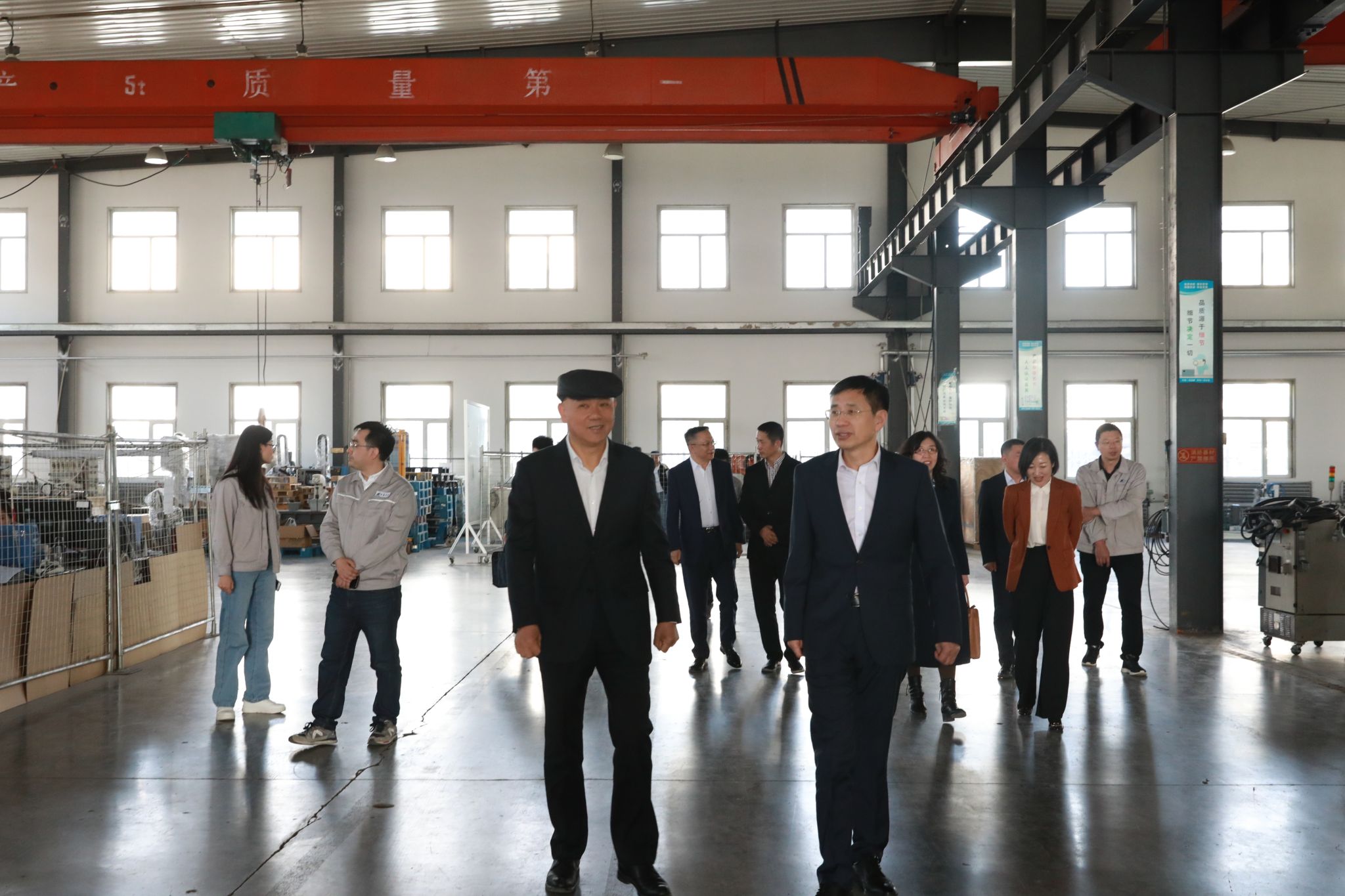 在肖建明的陪同下,张越杰一行参观了长春大正博凯汽车设备有限公司办公场地和生产车间。张越杰与工作人员进行了亲切的交流,了解了工作人员的毕业院校、所学专业、工作流程和岗位职能等基本情况。