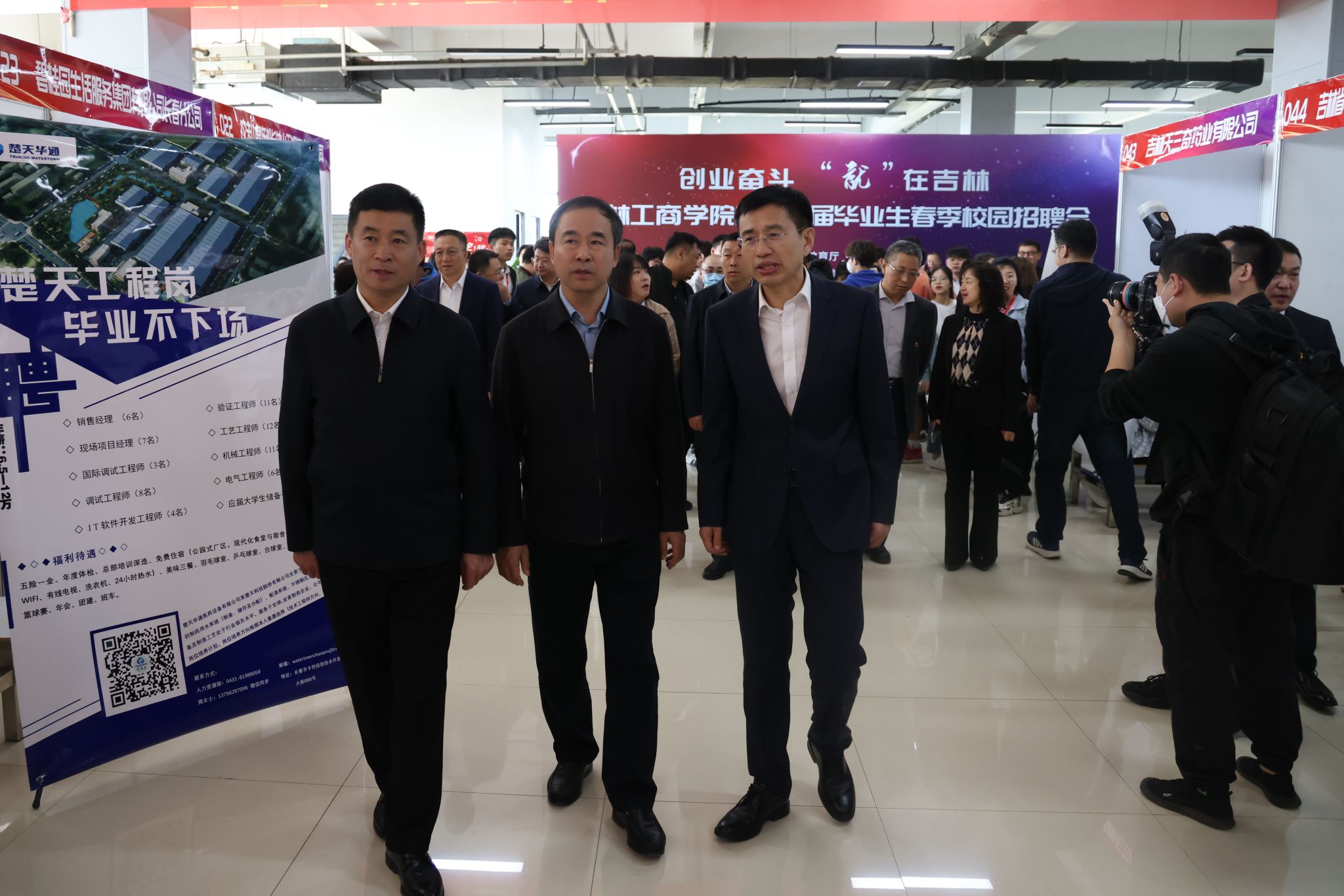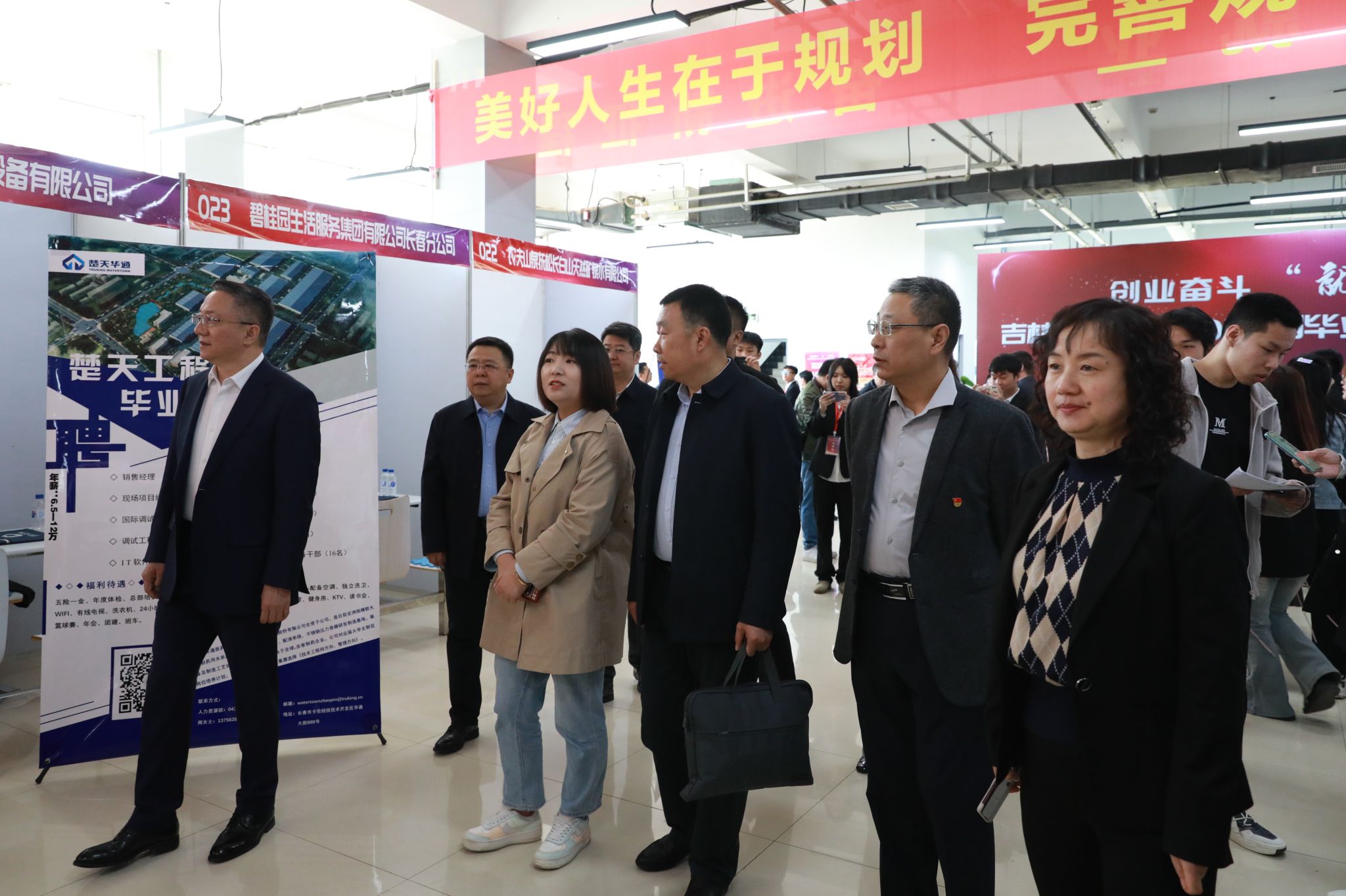 吉林省教育厅一级巡视员许世彬,学校党委副书记、校长张越杰,党委副书记杜希刚,纪委书记崔宪刚,副校长徐文、董本云实地调研指导毕业生就业工作,与用人单位代表、毕业生代表、学生志愿者进行了亲切交谈,详细询问用人单位对学校人才培养工作的意见和建议,仔细询问毕业生的择业准备、求职愿望和签约情况,并对志愿者们的辛勤付出进行慰问。