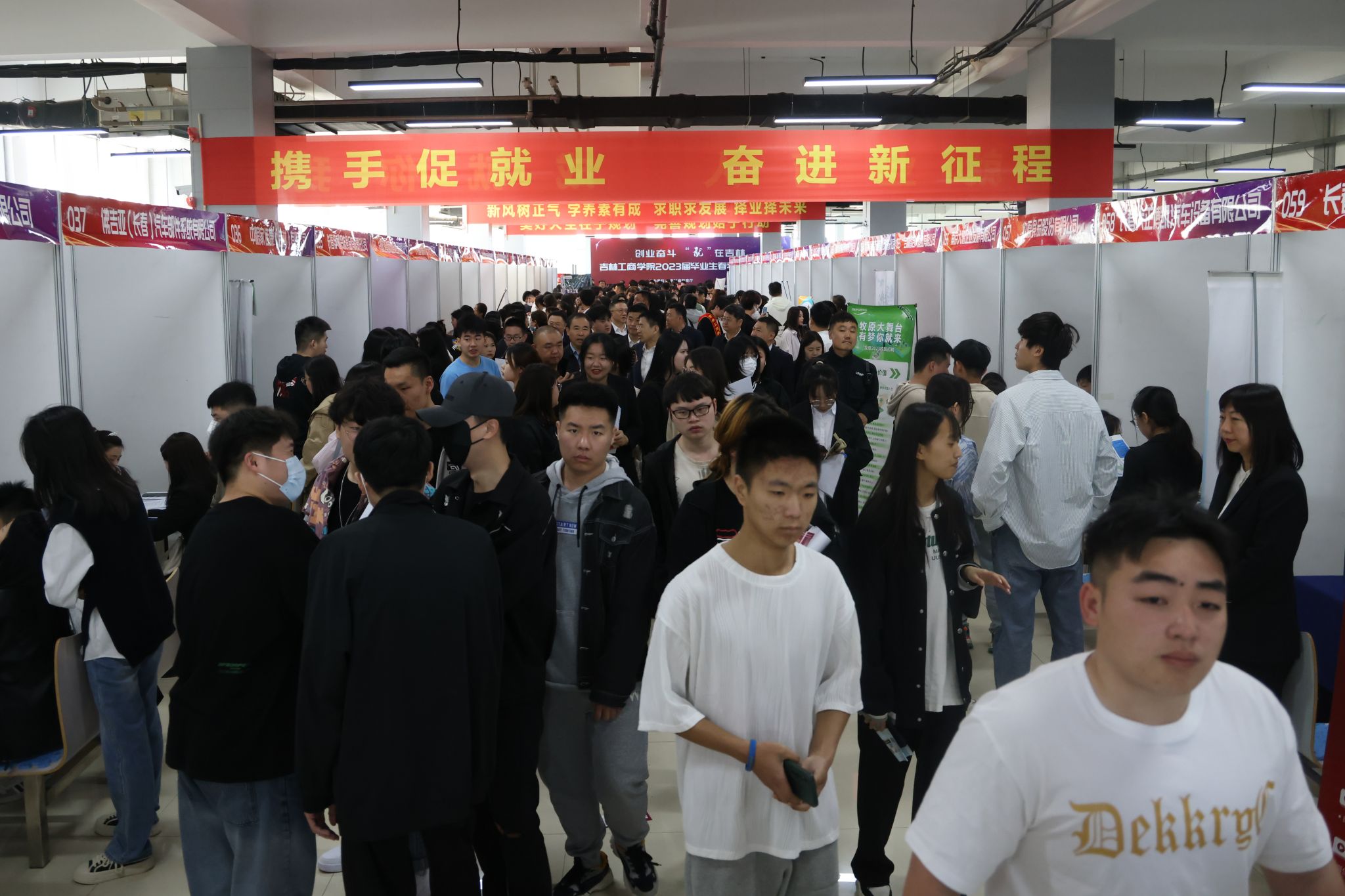 5月10日,由吉林省教育厅主办、吉林省高等学校毕业生就业指导中心和我校共同承办的“创业奋斗 ‘就’在吉林”2023届毕业生春季校园招聘会在学校二食堂举行。130余家用人单位参会,其中省内企业118家,占比90%以上,涵盖了金融、制造、教育、互联网、汽车、房地产、粮食加工等10余个行业,共提供岗位3600余个,1500余名学生参加了招聘会,累计投递简历1200余份,现场达成意向签约260余人。