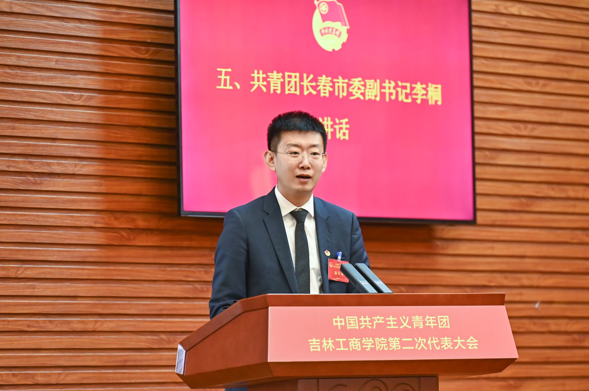 5月24日,中国共产主义青年团吉林工商学院第二次代表大会在第二教学楼A区429报告厅开幕,142名大会代表共聚一堂,共同谱写青春的篇章。吉林工商学院党委书记张炳辉、党委副书记杜希刚出席大会,共青团长春市委副书记李桐、共青团吉林省委学校部部长高岩、吉林大学等12所兄弟高校团委书记莅临大会。学校党委有关职能部门、群团组织主要负责同志,各学院党委书记、副书记及团代会全体代表参加大会。杜希刚主持会议。
