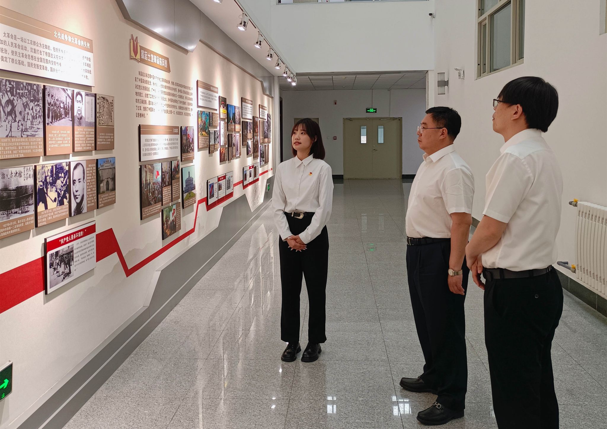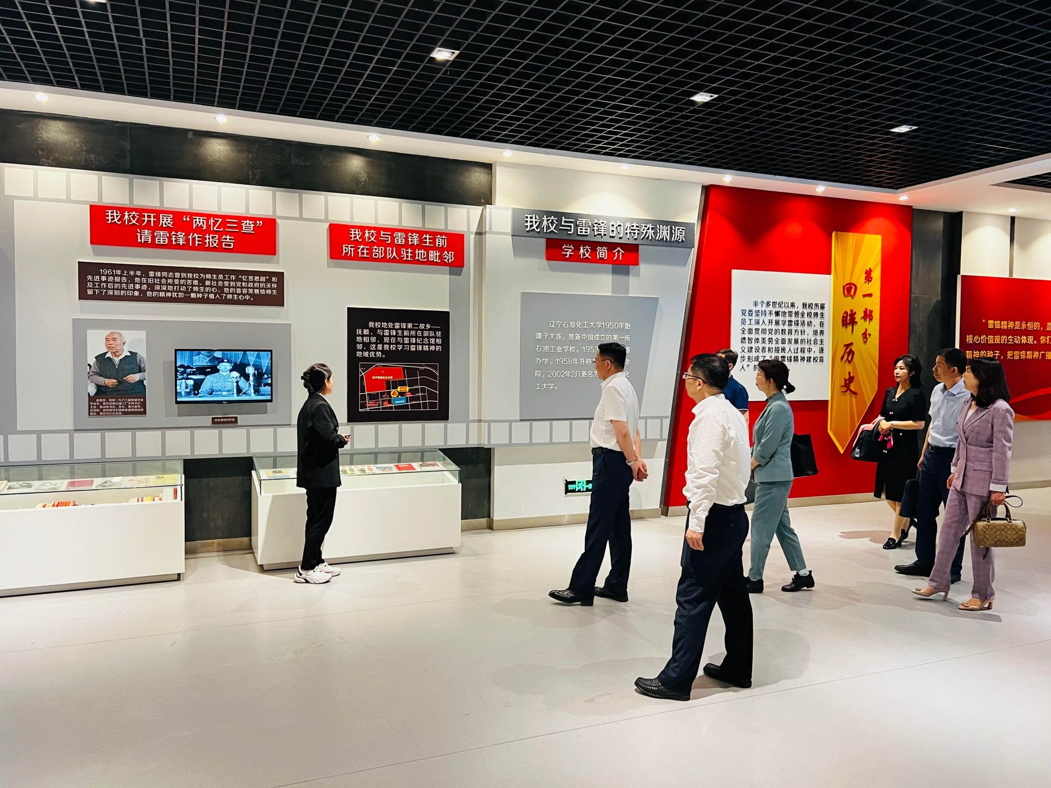 学习交流会后,在曹江涛、李会鹏的陪同下,张炳辉一行参观了辽宁石油化工大学的四史教育展廊、雷锋精神育人展馆和石油化工产业链实训培训基地。
