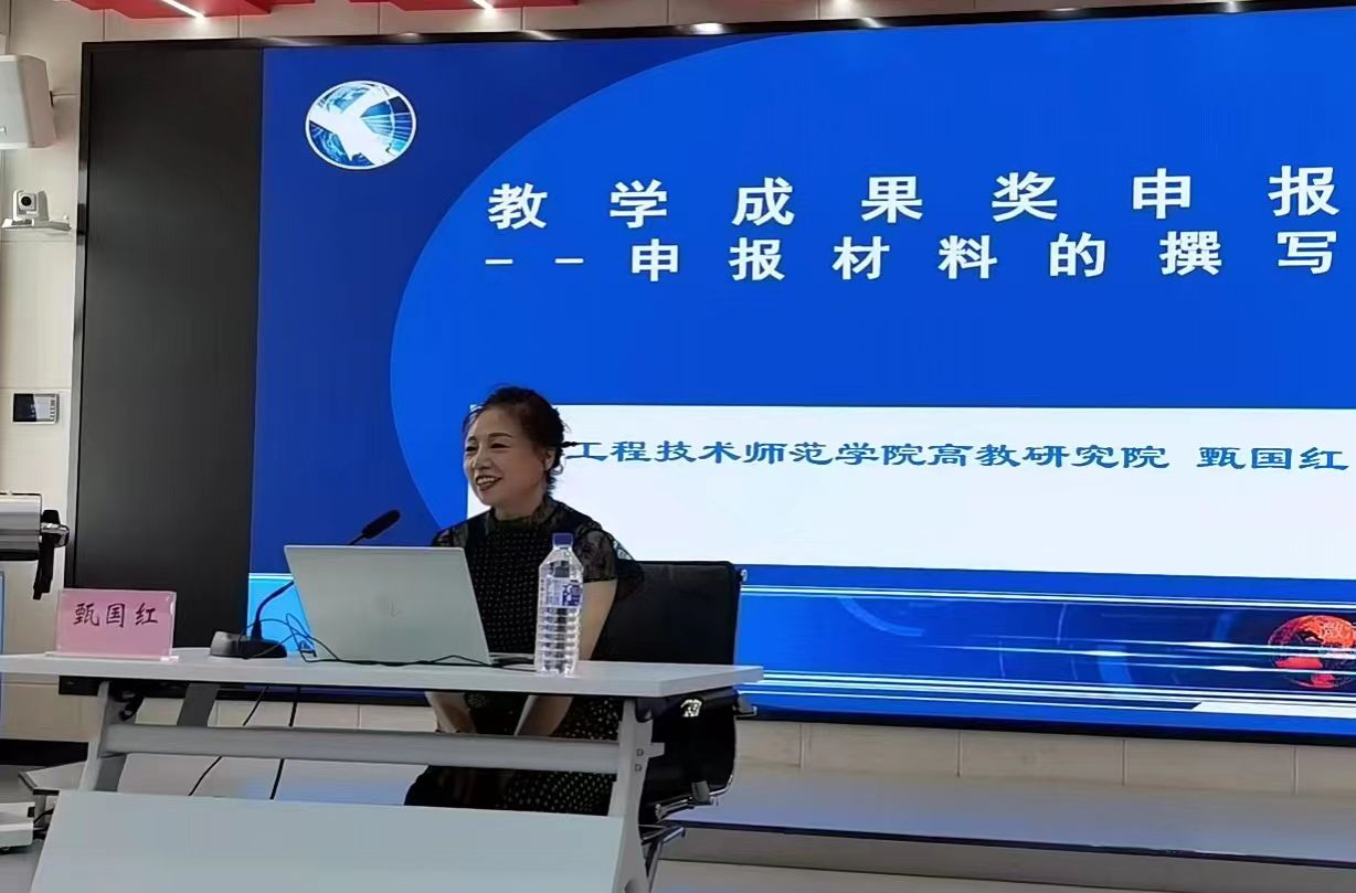 为加快推进学校高质量发展,更好地总结和凝练教学经验和改革成果,在首届校级教学成果奖培育项目申报工作开展之际,6月19日,学校教学成果奖培育与申报专题培训会在马克思主义学院思政智慧教学中心举行,吉林工程技术师范学院高等教育研究院院长甄国红教授受邀作报告。培训会由高等教育研究所所长刘淑媛主持。