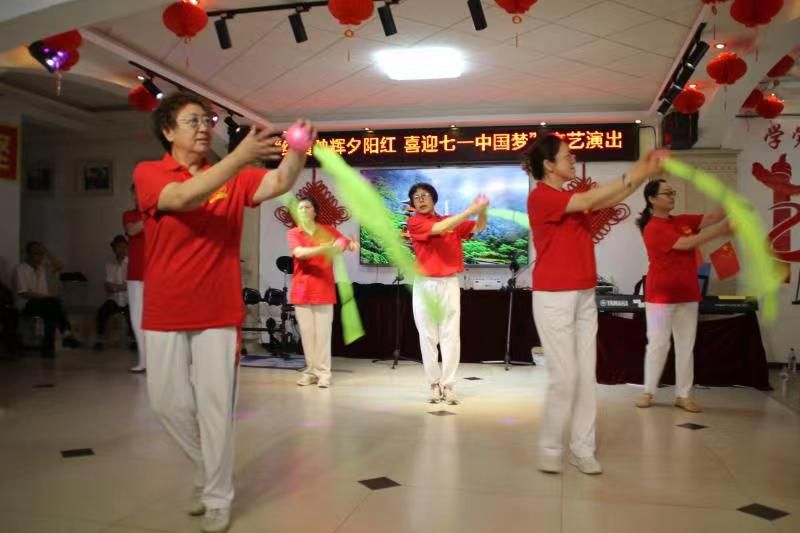 为丰富离退休职工的文化生活,结合学习贯彻习近平新时代中国特色社会主义思想主题教育,热情讴歌建党102年的辉煌成就,深情表达老干部对党的热爱之情,6月28日,离退休党委举行了“红霞映辉夕阳好,喜迎七一心向党”文艺汇演。
