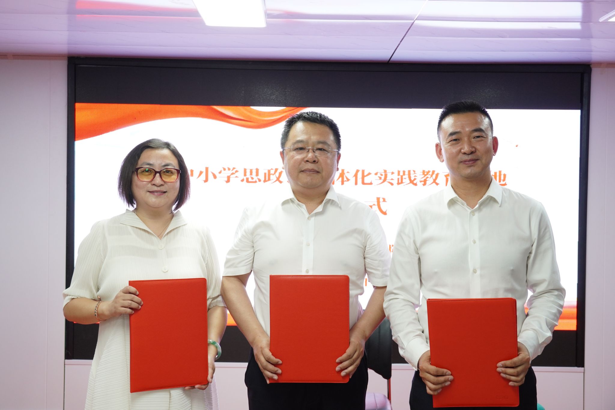 徐文代表学校为“吉林工商学院大中小学思政课一体化实践教育基地”揭牌。我校党委常委、宣传部部长李洋代表学校与苏瑞、郭飞签署合作意向书。