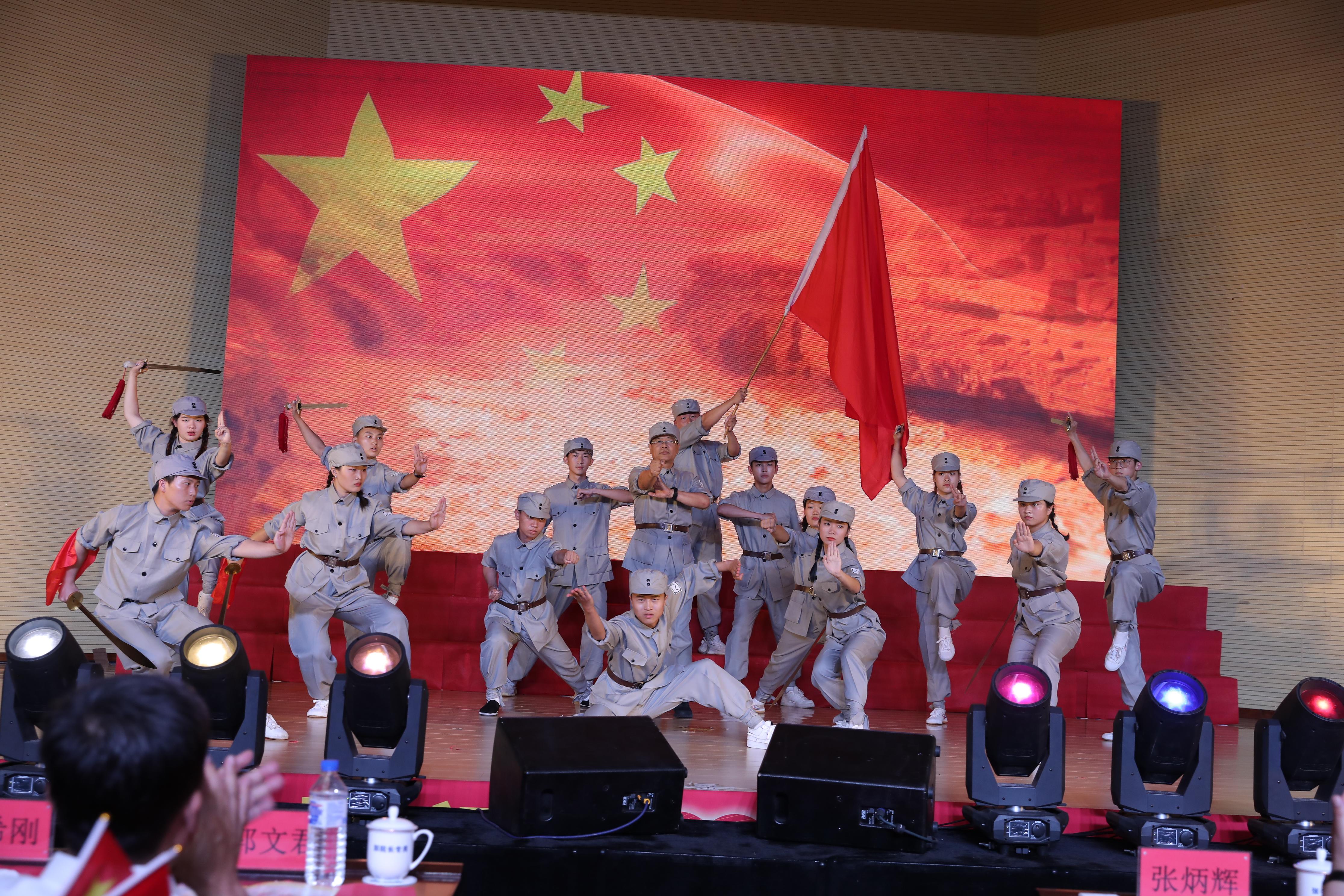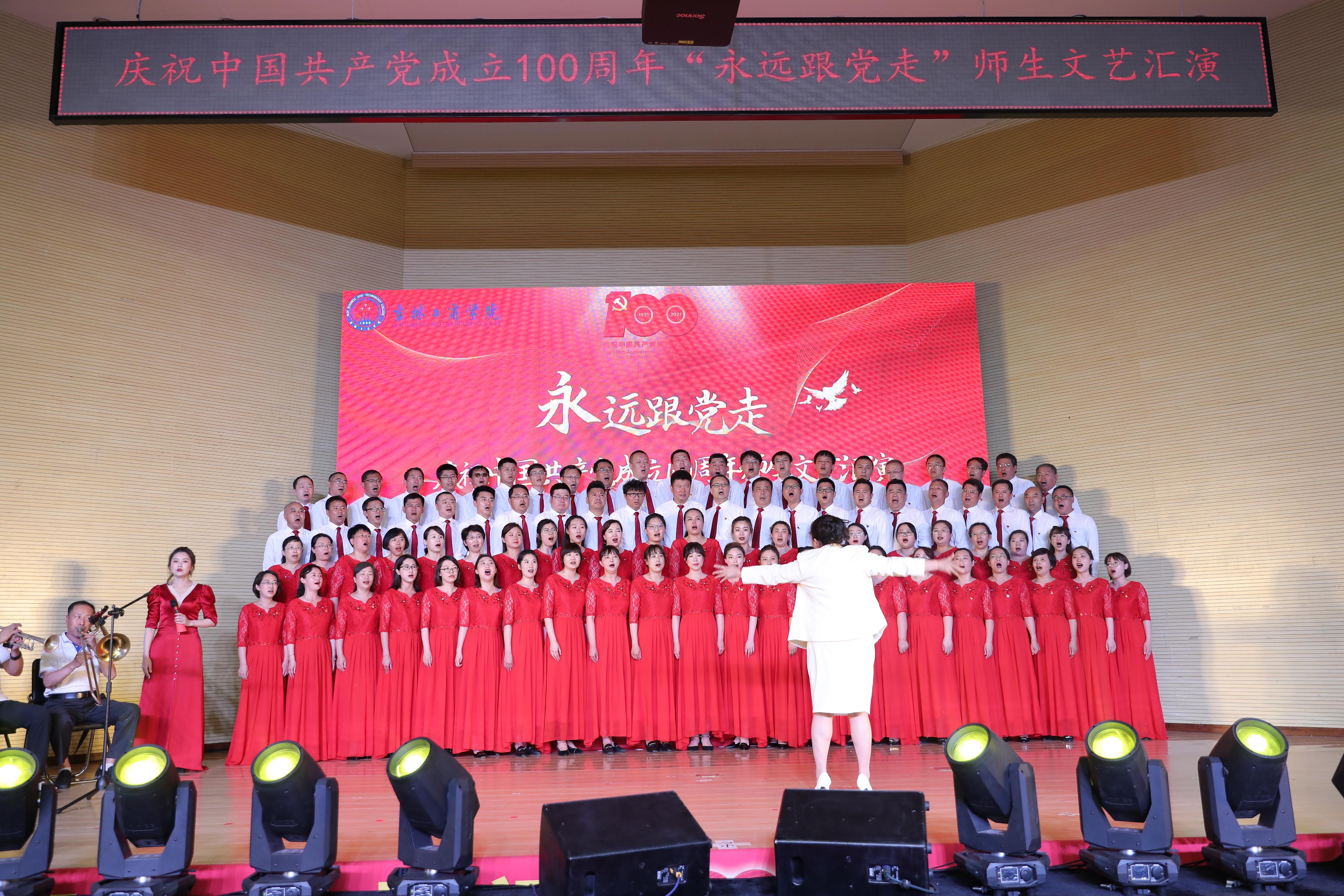 傍晚6点,庆祝中国共产党成立100周年“永远跟党走”专场文艺演出在第一教学楼A区117报告厅隆重举行。学校领导、各职能部门负责人、师生代表欢聚一堂,共同观看文艺演出。本次文艺演出同时开启线上直播,2.3万余人次在线观看,近5000次点赞,学校通过文化广场室外LED大屏幕进行同步直播,吸引学生驻足收看,师生反响热烈。整场演出多角度呈现了中国共产党百年奋斗征程和辉煌成就,表达了全校师生感党恩、听党话、跟党走的坚定决心,是一次精神的洗礼、思想的升华,更是一堂生动的党史学习教育大课。“团结就是力量,团结就是力量......”演出在机关党委教师嘹亮的歌声中精彩上演,晚会形式丰富,师生们用舞蹈、歌伴舞、配乐诗朗诵、京剧、合唱等形式表达爱党爱国的真挚情感。工学院党委带来的AI歌舞颂《跟党走奔复兴》极富创新性,AI智能机器人“党欣”担任指挥,赢得师生的阵阵掌声。粮食学院党委带来的群口快板《红船百年永荡我心》形式新颖、感染力强。马克思主义学院党总支带来的《妈妈教我一支歌》中有两位小演员用银铃般的童声唱出“没有共产党就没有新中国,没有共产党就没有新中国......”他们的歌声是那样的清润甘甜,像一股泉水叮咚叮咚流淌滋润在观众的心田。体育教研部党支部带来的武术表演《保卫黄河》刀术表演快速勇猛、激烈奔腾、强劲有力、雄伟彪悍,拳术表演姿势舒展、动作灵活、快速有力、节奏鲜明。现场演出人员一次次深情的表演将活动推向高潮。歌声或婉转或铿锵,舞蹈或轻柔或昂扬,无不展现了表演者们积极向上的精神风貌和拳拳爱党爱国之心。演出在全场齐唱《没有共产党就没有新中国》的歌声中落下帷幕。一位23个月的小观众身着“永远跟党走”的红色短袖,手中挥舞着国旗,为演职人员加油。