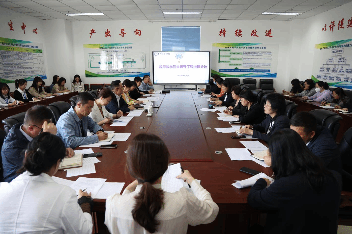 各教学单位院长(主任)、副院长(副主任),教务处、实验实训管理中心、教学质量监控与评价中心、高等教育研究所等部门科级以上人员、各教学单位高等教育质量监测国家数据平台数据填报人员参加了会议。