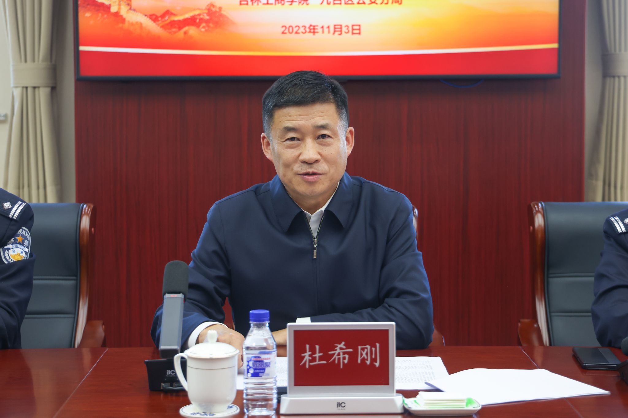 杜希刚代表学校向九台区公安分局对我校多年来给予的大力支持表示衷心感谢。他指出,聘任法治辅导员,是加深警校融合、推进平安校园建设的重要举措,希望警校双方以法治辅导员进校园为契机,充分发挥公安民警参与学校法治教育、权益保护、预防犯罪、安全管理、教育惩戒、依法治理等方面作用,深入开展形式多样的法治教育宣传活动,全面提高师生的法律意识。杜希刚强调,我校高度重视、积极响应法治辅导员进校园工作,与九台区公安分局协调联动,为法治辅导员履职提供了必要的工作便利,相信在九台区公安分局的鼎力支持下,在法治辅导员的精心指导下,我校的法治教育和平安校园建设工作一定会取得更加显著的成效。