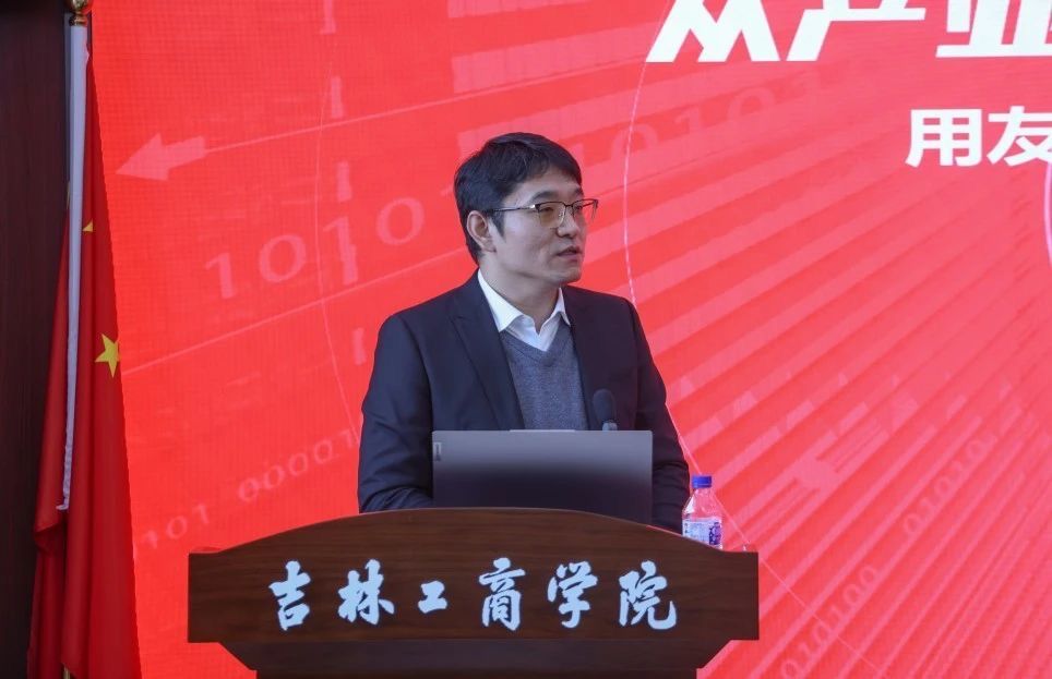 贾大明从产业数智化到教育数智化角度,汇报了共建产业学院的相关规划愿景。他表示,新道科技股份有限公司将以构建产教融合新范式、打通人才培养新通路为使命,牢牢抓住“智改数转”的中国教育新常态,以教育数智化服务产业数智化。新道科技股份有限公司将与吉林工商学院一道肩负起时代责任,以“校级产业学院”为突破口,培育数智新人,构建产教融合命运共同体。