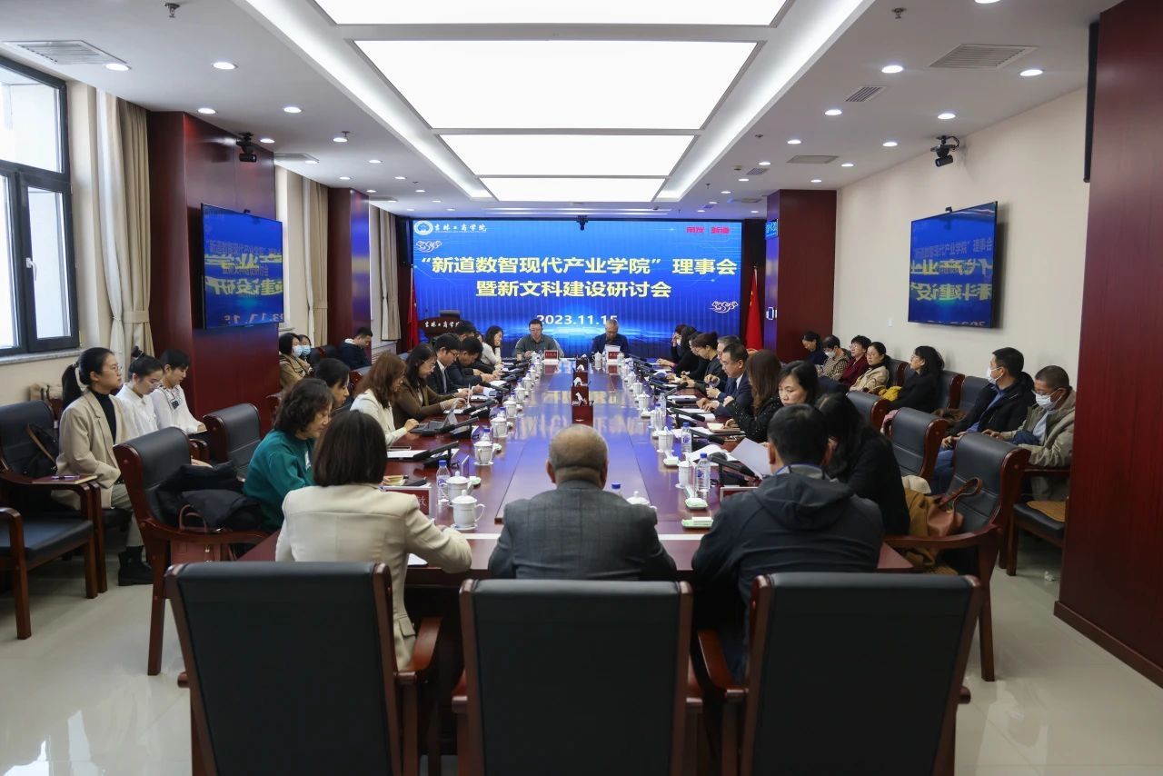 为深入贯彻党的二十大精神关于产教融合、协同创新的新思想,落实探索“政、校、企、行”深度交融、共享资源、共育人才的路径,11月15日上午,学校在综合办公楼702会议室召开了2023年度“新道数智现代产业学院”理事会暨新文科建设研讨会。学校副校长、产业学院院长徐文,新道科技股份有限公司副总裁贾大明、首席顾问梁峰、东北区总经理金丽巍等出席会议。我校会计学院、教学质量监控与评价中心、高等教育研究所负责人,各教学学院主要领导、相关职能部门领导以及会计学院教师代表参加会议。会议由会计学院院长李长山主持。