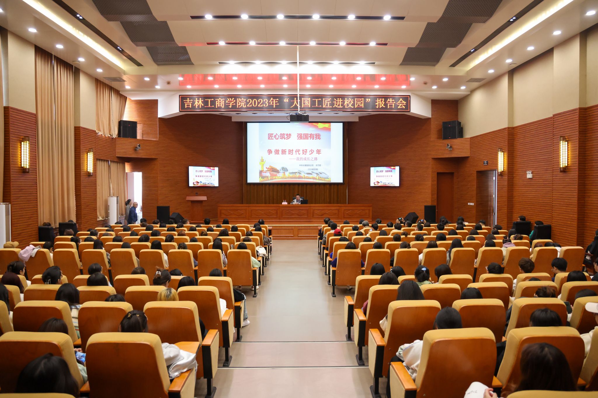 他希望,同学们未来无论从事什么样的工作,都要坚守自己的理想信念,都应当理解工匠精神、劳模精神和劳动精神,精益求精把手中的产品干好、干精,实现实业报国,用劳动和汗水为新时代中国梦提速。