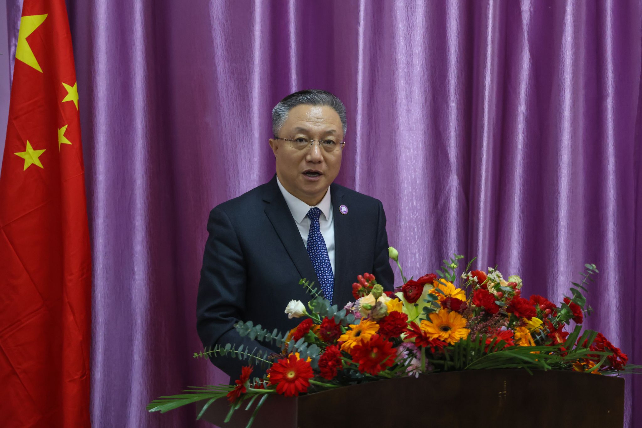 张越杰为校友会授旗。