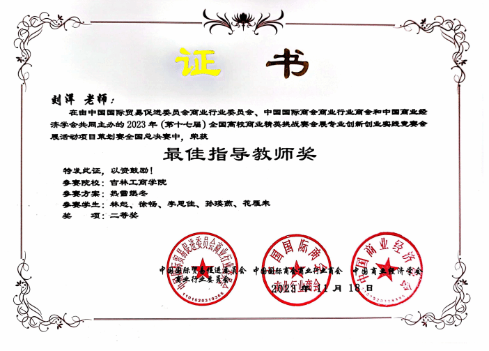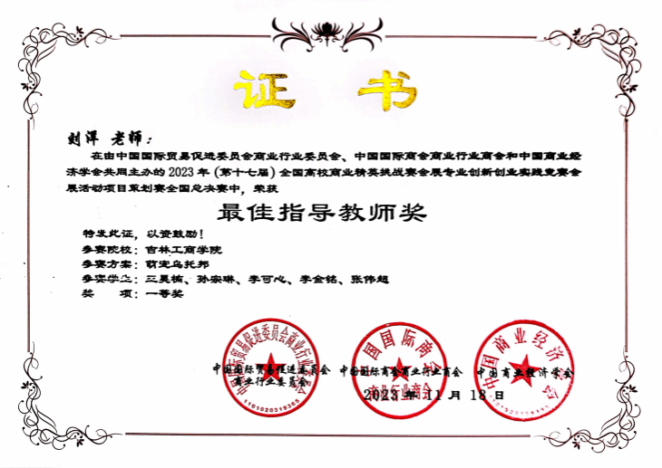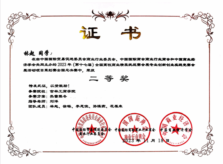 近日,由中国国际贸易促进委员会商业行业委员会、中国国际商会商业行业商会和中国商业经济学会联合主办的2023年(新加坡)国际商务会展策划大赛中国地区选拔赛暨第十七届全国高校商业精英挑战赛会展创新创业实践竞赛全国总决赛在广州举办。我校旅游烹饪学院会展经济与管理专业的王昊楠、孙宗琳、李可心、李金铭、张伟超等5名同学提交的《萌宠乌托邦》项目荣获全国一等奖,林起、徐畅、李思佳、孙瑛燕、花雁来等5名同学提交的《热雪燃冬》项目荣获全国二等奖。旅游烹饪学院会展经济与管理专业的刘洋老师荣获最佳指导教师。