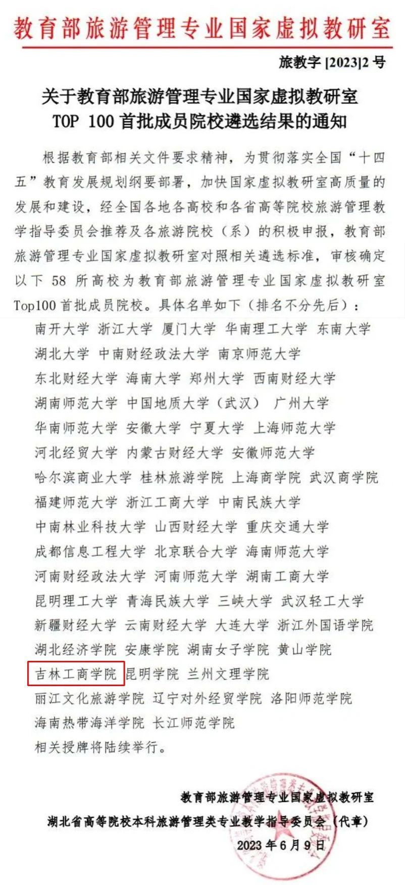 为贯彻落实全国“十四五”教育发展规划纲要部署,加快国家虚拟教研室高质量发展和建设,根据教育部相关文件要求,教育部旅游管理专业国家虚拟教研室在2023年上半年组织遴选成员院校。我校旅游烹饪学院积极申报,经过严格审核,成功入选教育部旅游管理专业国家虚拟教研室确定的Top100首批成员院校。