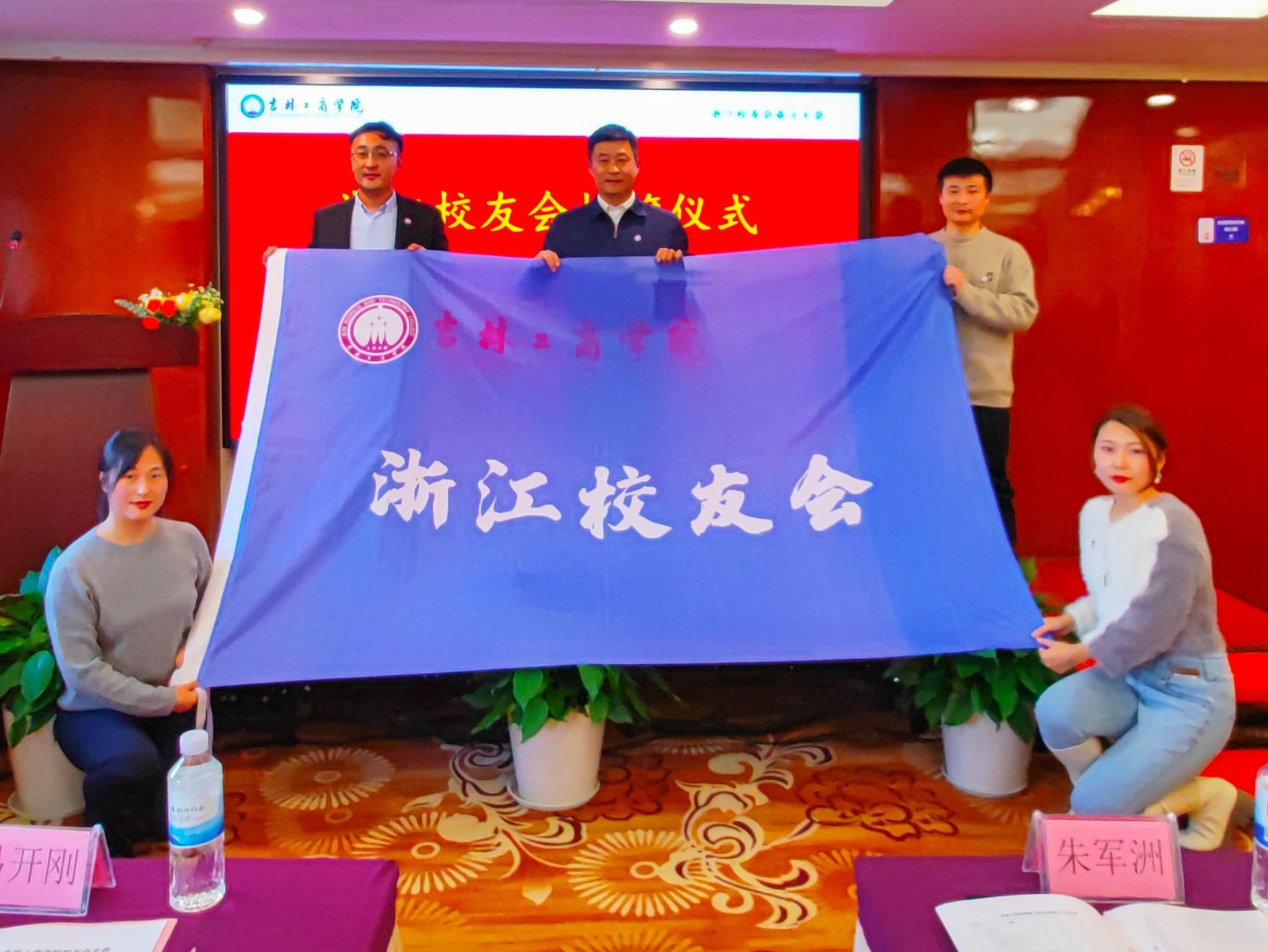 杜希刚向我校浙江校友会授旗。