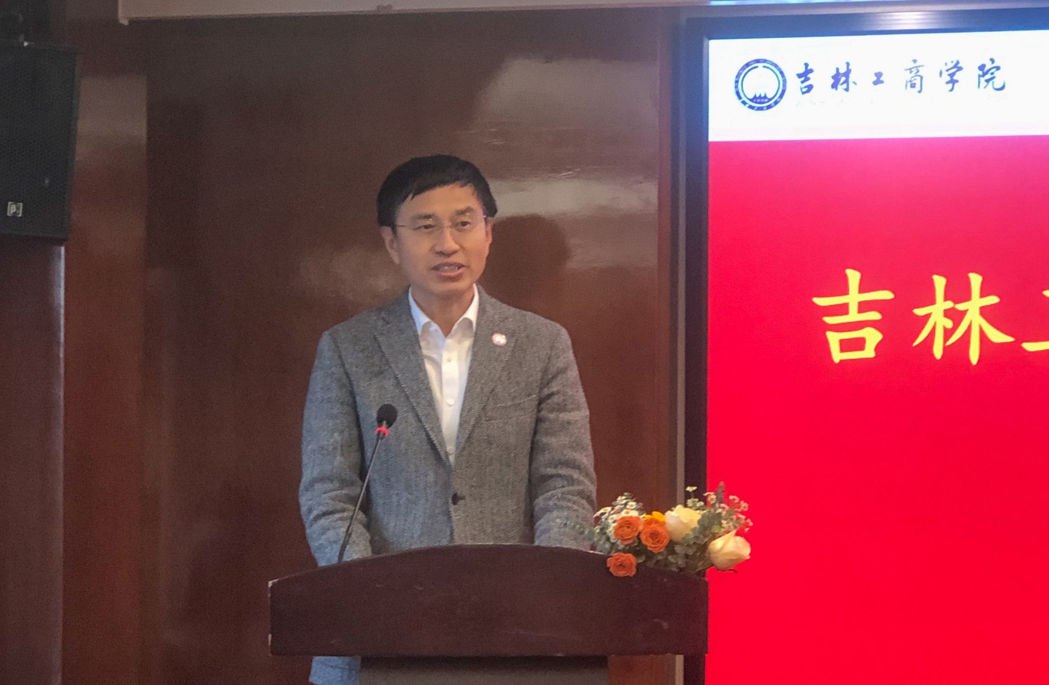 成立大会在庄严的国歌声中开幕,与会人员观看了吉林工商学院宣传片。