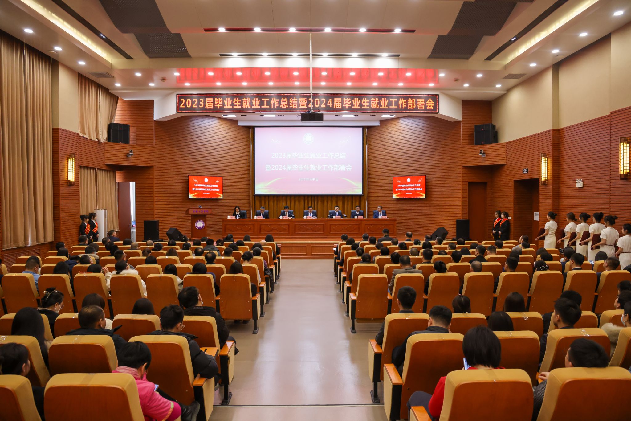 为深入贯彻党的二十大精神和党中央、国务院“稳就业”“保就业”决策部署,落实教育部、人社部2024届全国普通高校毕业生就业创业工作视频会议精神和省委、省政府、省教育厅就业工作要求,全面总结2023届毕业生就业工作,表彰先进集体和个人,部署推进2024届毕业生就业工作,12月6日上午,学校在第二教学楼A区429报告厅召开了2023届毕业生就业工作总结暨2024届毕业生就业工作部署会。党委书记张炳辉,党委副书记、校长张越杰,党委副书记杜希刚、迟柏龙,纪委书记崔宪刚,副校长徐文、董本云出席会议。