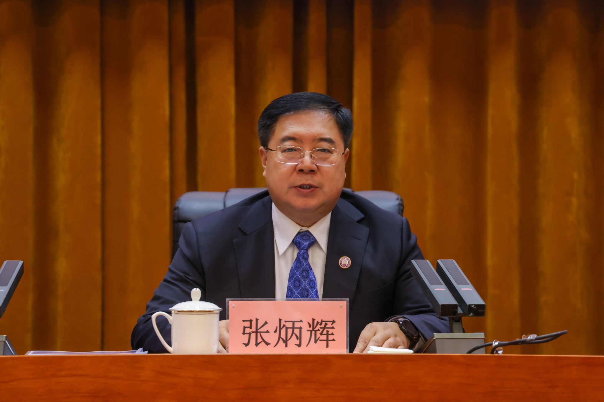 张炳辉作了题为《提高站位、稳步推进、持续提升,奋力谱写我校就业工作新篇章》的讲话。他代表学校党委,向受到表彰的先进集体和先进个人表示祝贺,向为学校就业工作辛苦付出的各单位、各部门和全体教职员工表示感谢。他在讲话中全面总结了我校2023届毕业生就业工作,肯定了成绩,指出了不足。就推进2024届毕业生就业工作,他强调四点意见:一是要进一步提高政治站位,强化组织领导,完善就业协同联动体系。全面推进“班子带头、部门统筹、学院主抓”的就业协同机制,主动搭建“学校、政府、企业”的就业联动机制,不断完善“招生、培养、就业”反馈调整机制。二是要分层分类引导,完善就业指导教育体系。要创新思政教育方式,深化价值引导教育,结合学科特点和学生实际,优化生涯发展教育,强化就业育人教育。三是要深入推进访企拓岗行动,构建长效机制。全校各级领导干部和各单位、各部门,要进一步拓展就业渠道和就业岗位,深入开展社会需求调查,推进实施访企拓岗成效评价。四是要全面提档升级,完善就业服务保障体系。逐步建设一支高素质骨干队伍,不断加强就业服务信息化建设,精准实施就业困难帮扶。张炳辉强调,全校各单位、各部门,要继续保持奋发有为的精神状态、攻坚克难的担当意识、与时俱进的进取精神,凝练特色、树立形象、展示力量、铸造辉煌,为推进我校建设国内知名、省内一流的特色高水平应用型大学作出新的、更大的贡献。