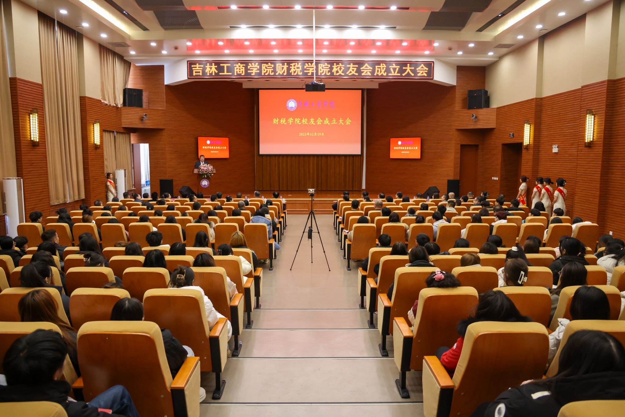 12月15日上午,吉林工商学院财税学院校友会成立大会在第二教学楼A区429报告厅举行。学校党委书记张炳辉,党委副书记、校长张越杰,党委副书记杜希刚,副校长徐文出席大会。学校校友工作办公室、部分职能部门与教学单位负责人,优秀校友代表、财税学院全体教师和在校学生代表共计200余人参加了大会。