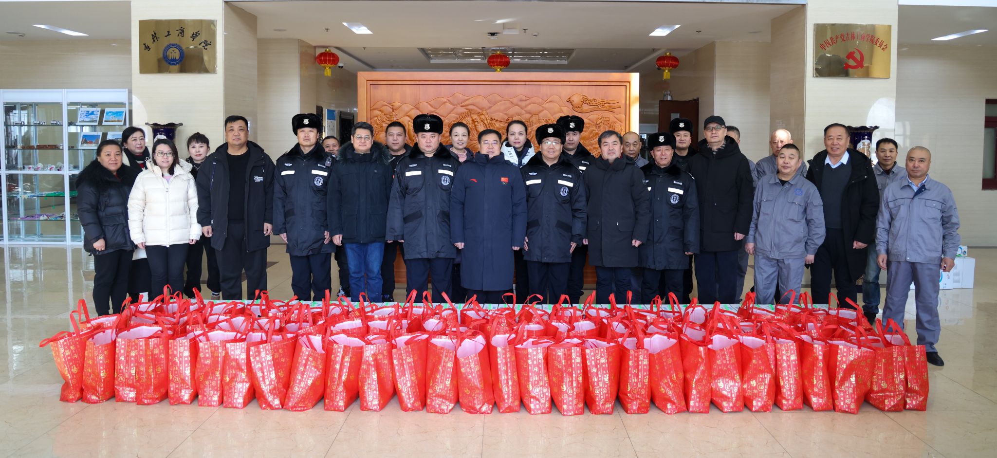 丹凤呈祥龙献瑞,红桃贺岁杏迎春。2月9日,正值农历除夕,在阖家团圆的喜庆时刻,党委书记张炳辉、副校长管清平,深入校园各个岗位,看望慰问春节和寒假期间坚守岗位的教职工,代表学校送上新春祝福和节日慰问品。