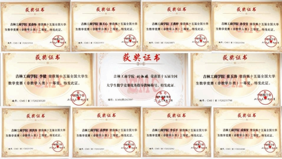 2023年,我校学生参加第十五届全国大学生数学竞赛并取得优异成绩,获吉林赛区一等奖2项、二等奖3项、三等奖5项。