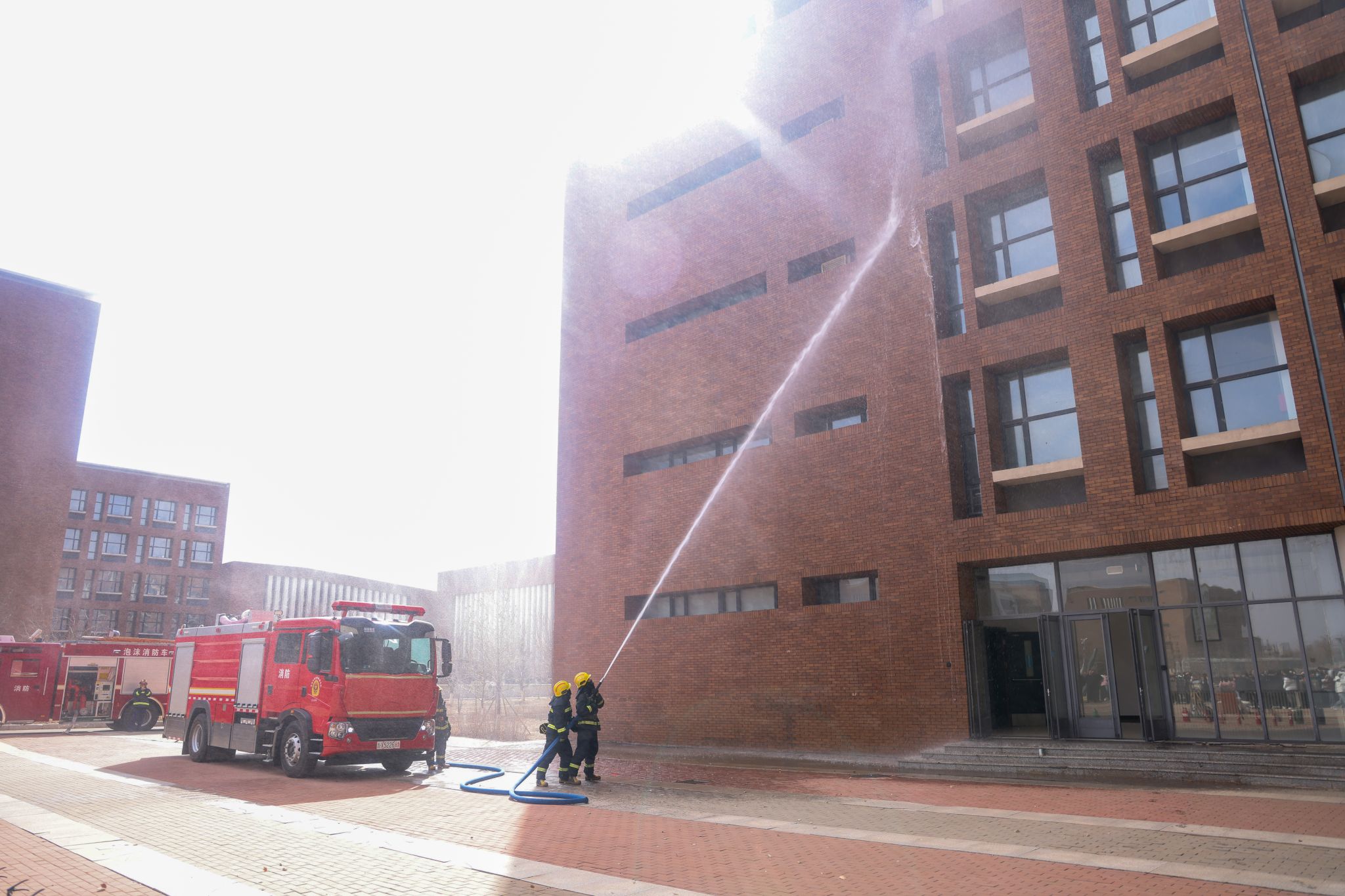 强化消防意识,筑牢安全防线。为提高师生防火应急处置能力,深化师生的疏散逃生意识,按照学校年度疏散逃生演练计划和《吉林工商学院火灾应急疏散预案》步骤,3月29日,安全保卫处联合九台区卡伦湖大街消防救援站在实验楼进行了消防疏散逃生与灭火演练。学校党委副书记杜希刚现场指导演练。