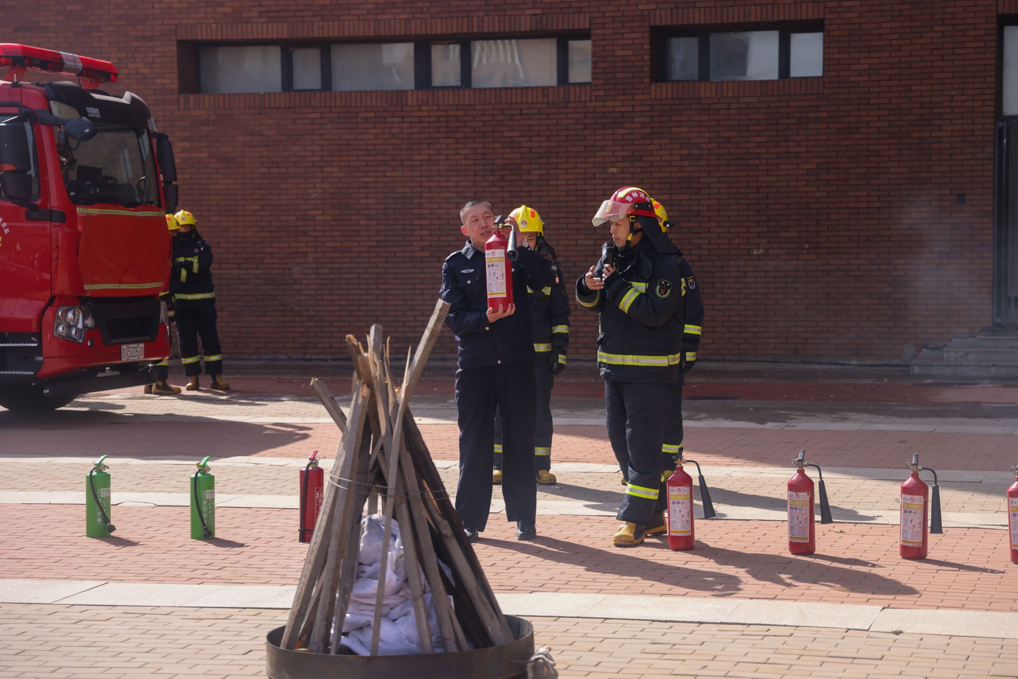 卡伦湖大街消防救援站靳清伟副站长现场讲解了火灾发生时的自救逃生方式和预防火灾发生等相关知识。学校安全保卫处防火科负责人郭凯演示了使用灭火器、床铺灭火的方法和步骤。