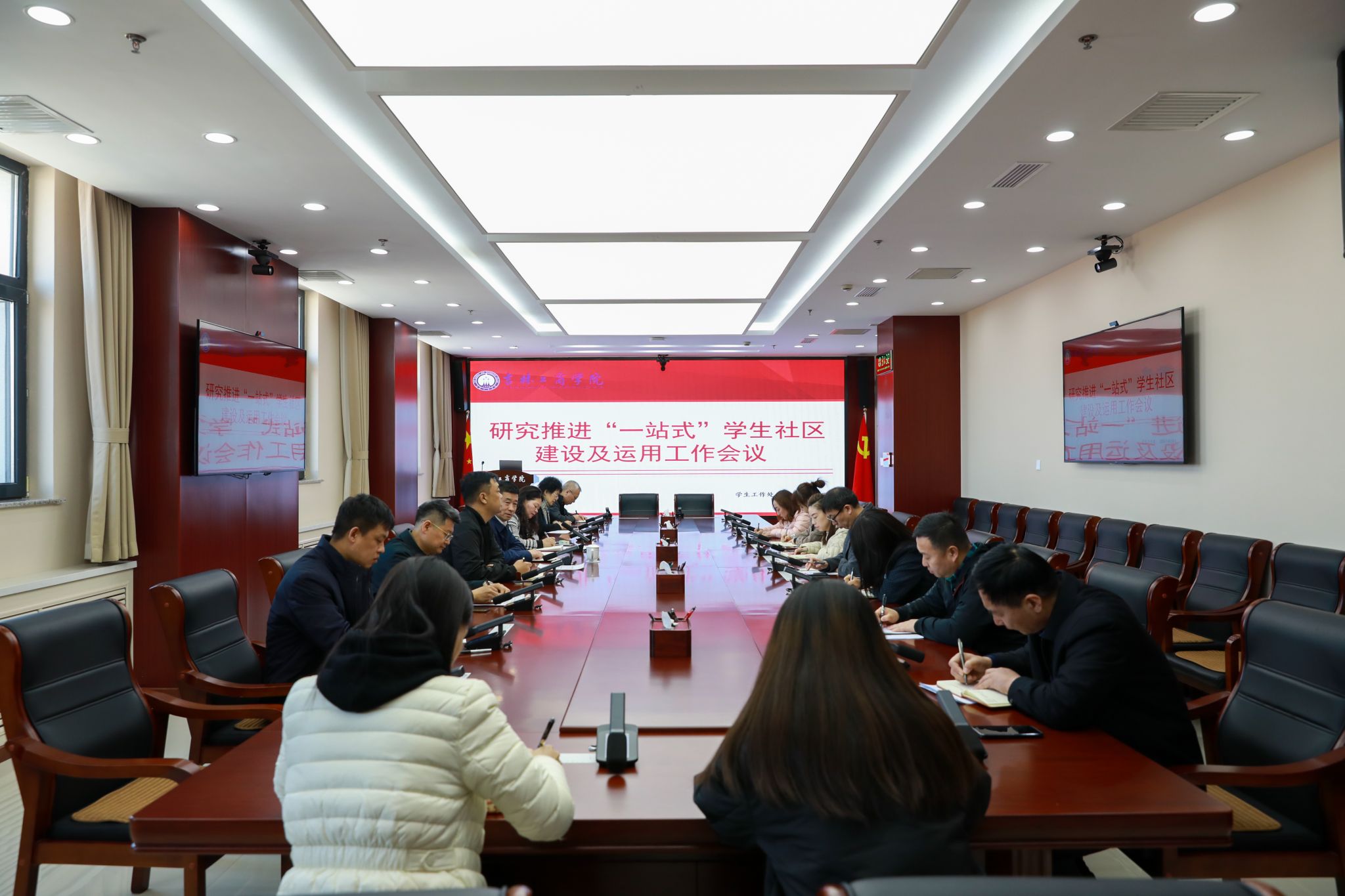 为推动我校“一站式”学生社区建设及运用工作,充分发挥“一站式”学生社区“全景式”空间育人作用,提升管理效能和服务水平,4月8日,学校在综合办公楼702会议室召开了推进“一站式”学生社区建设及运用工作会议。学校党委副书记杜希刚出席会议并讲话。相关职能部门负责人、部分教学学院党委副书记参加会议。