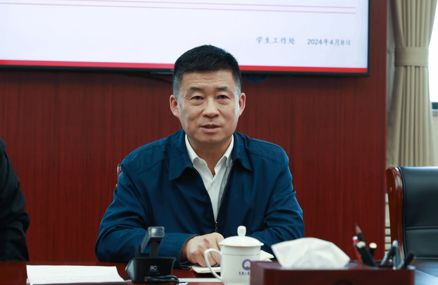 学校党委常委、组织部部长耿琪,党委学生工作部部长高楠,学校办公室主任王骞,马克思主义学院院长韩杰,团委书记尹勃特,教务处副处长郭志峰分别就在党建引领下推动“一站式”学生社区建设工作、“一站式”学生社区运行情况及下一步工作安排、推动学校领导力量入驻学生社区实现思政力量下沉的相关举措、团组织力量融入学生社区、实现服务资源进社区进行了汇报。