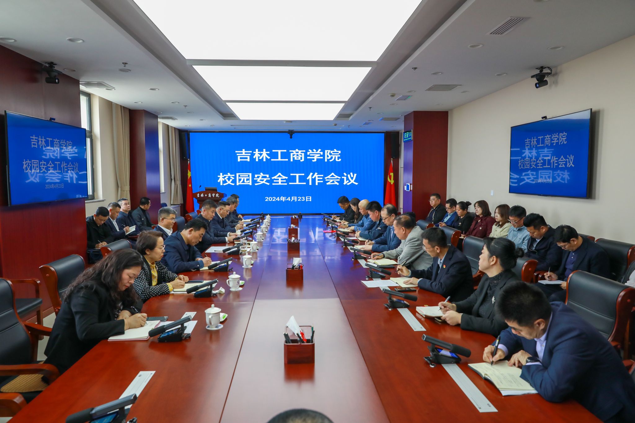为深入学习贯彻习近平总书记关于安全生产工作的重要论述和指示批示精神,增强做好校园工作的责任感、使命感,切实做好各项安全工作,确保师生安全、校园稳定,4月23日,学校在综合办公楼702会议室召开了2024年校园安全工作会议。学校党委副书记、校长李宝永出席会议并讲话,党委副书记杜希刚、迟柏龙,副校长徐文、张熙奀、管清平出席会议。会议由杜希刚主持。