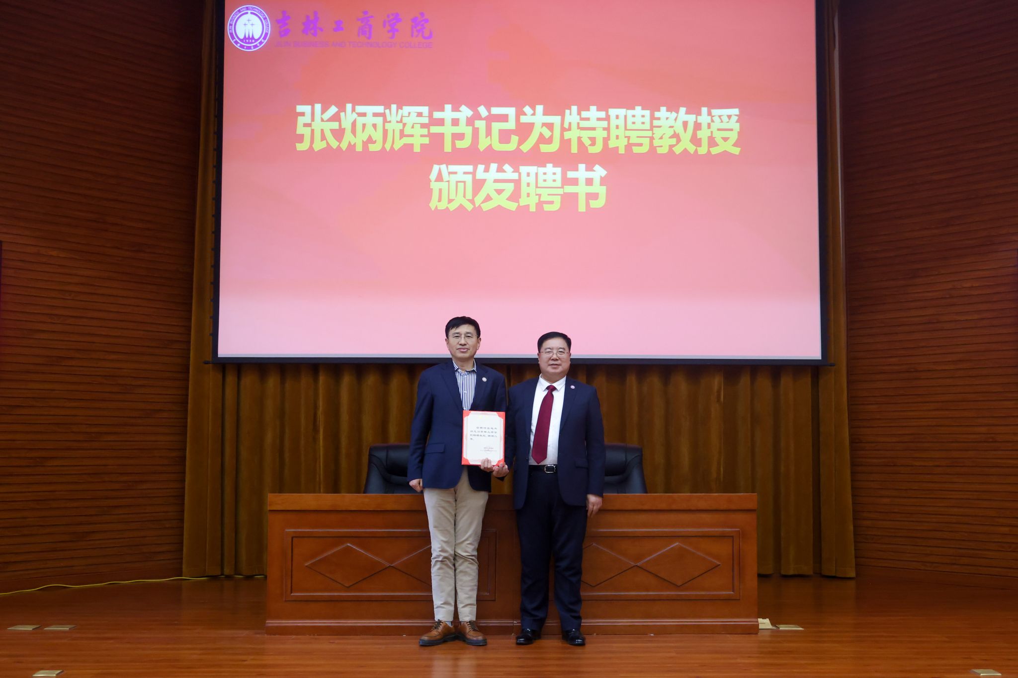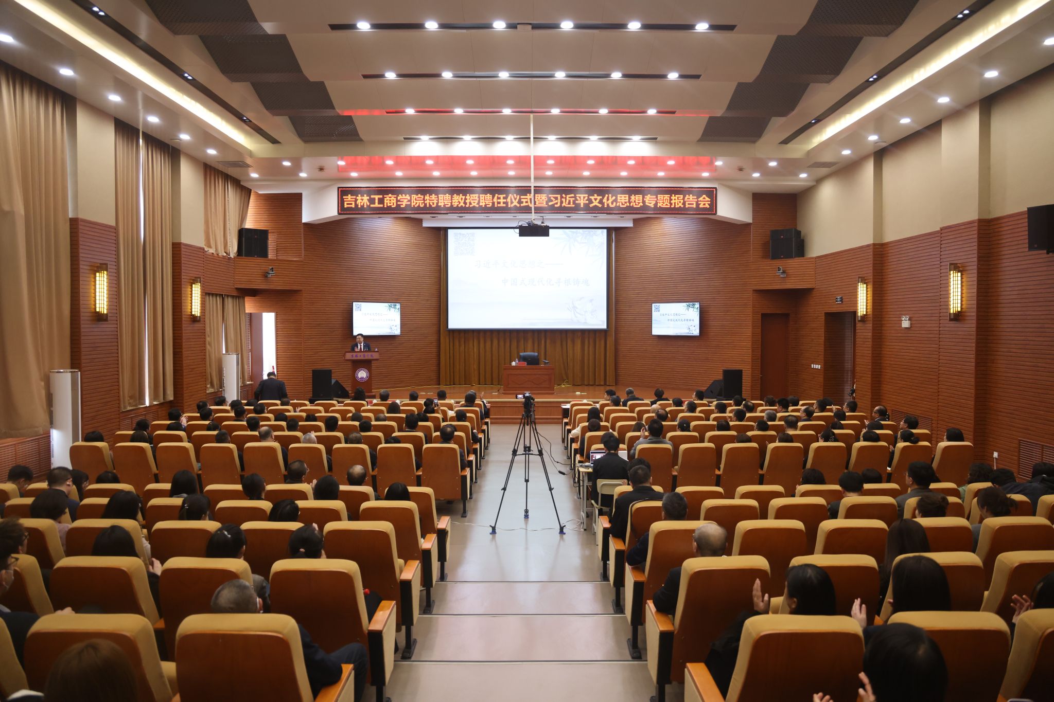 4月24日,学校在第二教学楼A区429报告厅举行特聘教授聘任仪式暨习近平文化思想专题报告会。党委书记张炳辉,党委副书记、校长李宝永,党委副书记杜希刚,纪委书记、监察专员崔宪刚,副校长徐文、张熙奀、管清平、董本云出席会议。