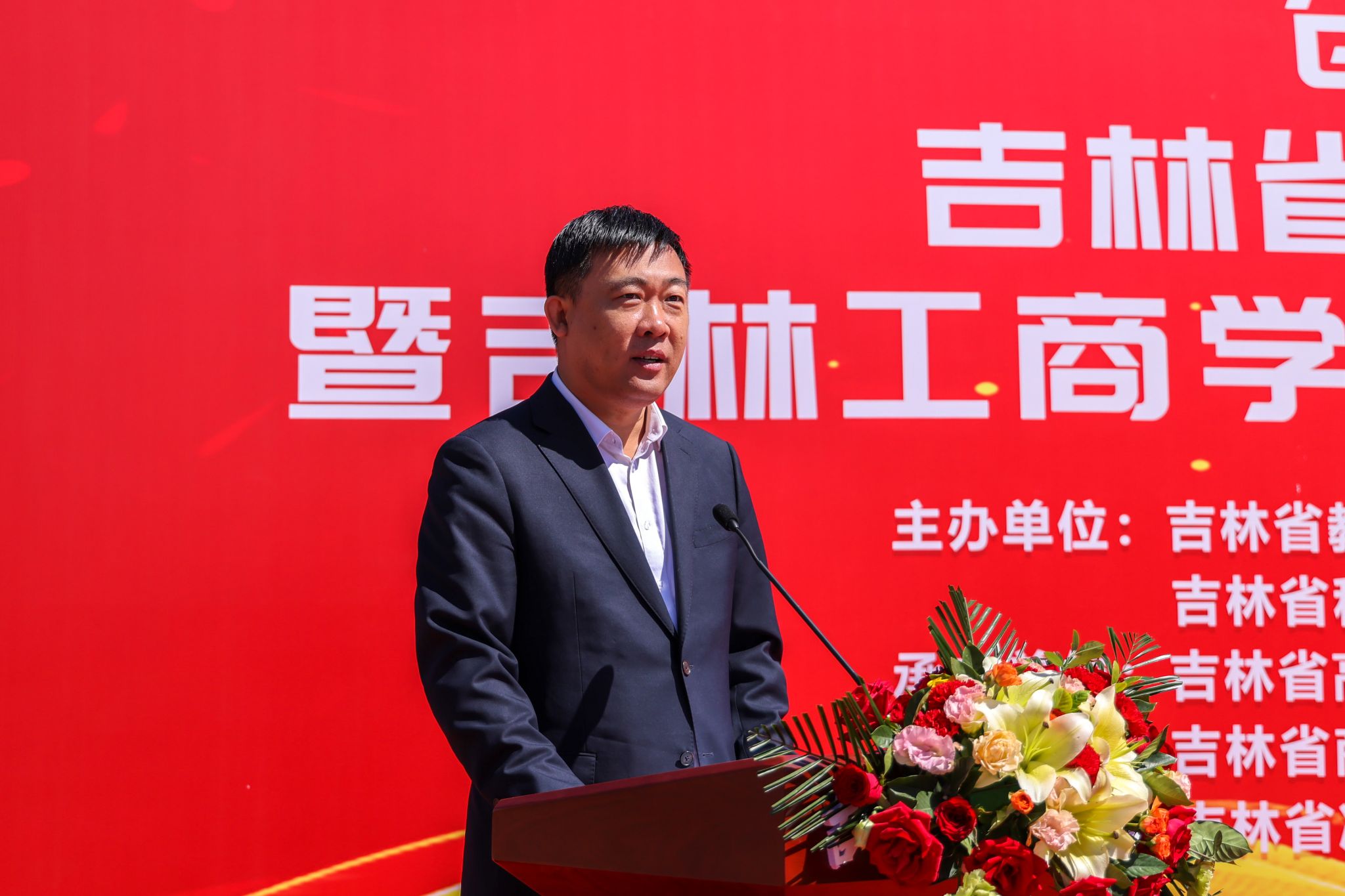 杜希刚代表吉林工商学院向多年来关心、支持、帮助学校建设发展的各级部门、企事业单位和莅临本次大会的各位领导、企业代表表示欢迎和感谢。他介绍了学校的办学历史、概况和特色。他表示,吉林工商学院坚持以教育教学为中心,持续加强内涵建设,不断提升办学水平,在教学科研、人才培养、服务地方社会经济发展等方面取得了显著成绩。他希望,不断加强校政企合作,实现互利共赢、开放共享、协同创新、共同发展,为服务吉林省“四六四”新格局、服务大旅游产业集群高质量发展贡献吉林工商学院力量;希望各用人单位与吉林工商学院建立更加紧密的联系,选聘英才、招贤纳士;希望广大毕业生充分展示个人素质和专业能力,彰显吉林工商学院学子风采。