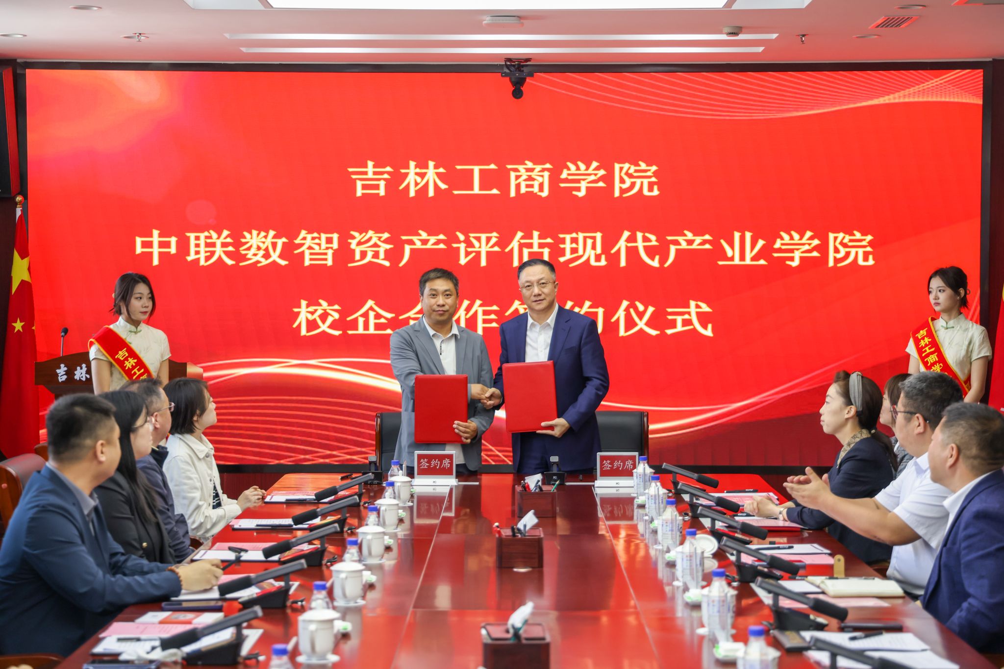 徐文与艾平签署了《吉林工商学院中联数智现代产业学院校企合作协议》。