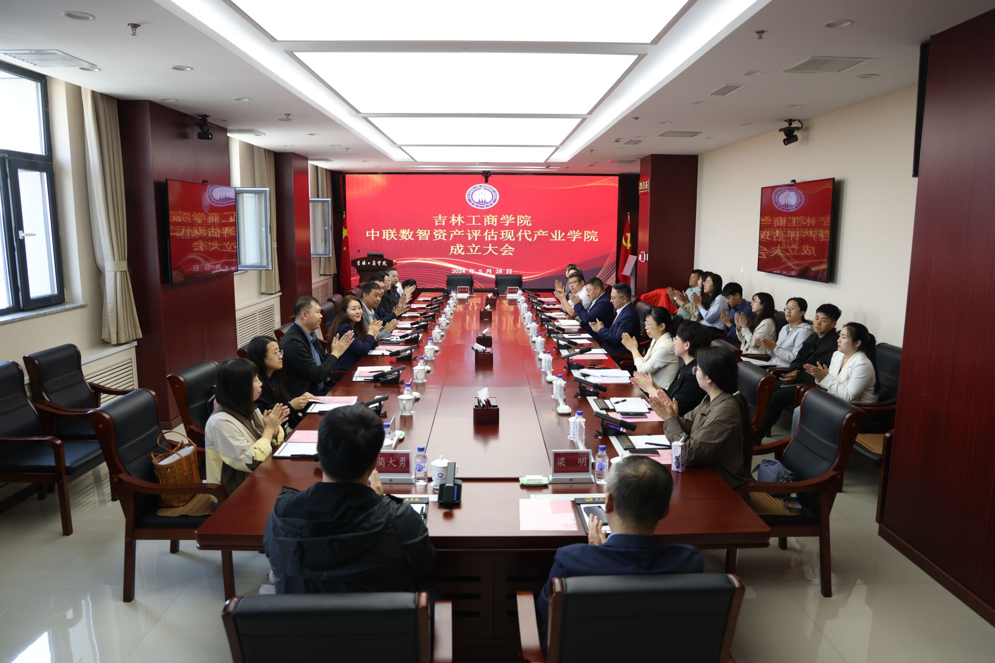 王丽丽宣读了《吉林工商学院中联数智现代产业学院章程》及第一届理事会成员名单。徐文当选产业学院院长、理事长。