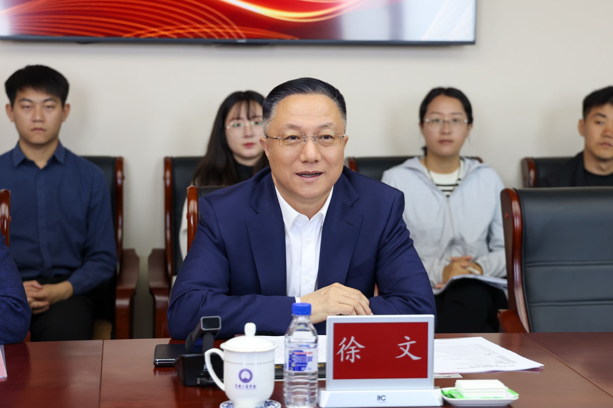 成立大会结束后,产业学院召开了理事会第一次会议。徐文阐述了产业学院建设的主要目标和具体内容。他强调,产业学院的成立是我校顺应大数据时代的数智化变革要求,深度推进产教融合、协同育人的重要举措。通过创新人才培养模式,深化应用型本科专业的内涵建设,共同搭建实习就业基地,提供师资培训交流学习,组织学科专业竞赛,开展项目课题合作研究,助力成果转化,赋能区域经济发展。艾平介绍了企业优势及资源优势,并对产业学院未来的发展方向和主要合作内容进行了规划。双方对产业学院的建设达成了共识。学校相关部门负责人与合作企业代表进行了深入地交流。