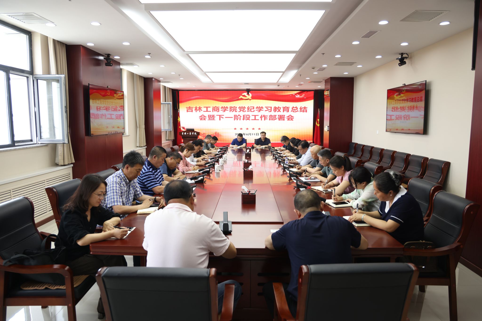 为切实推动学校党纪学习教育走深走实,确保各项任务圆满完成,6月11日,学校党纪学习教育专班在综合办公楼702会议室召开阶段工作总结暨下一阶段工作部署会。党委副书记迟柏龙出席会议并讲话。会议由党委常委、组织部部长耿琪主持。