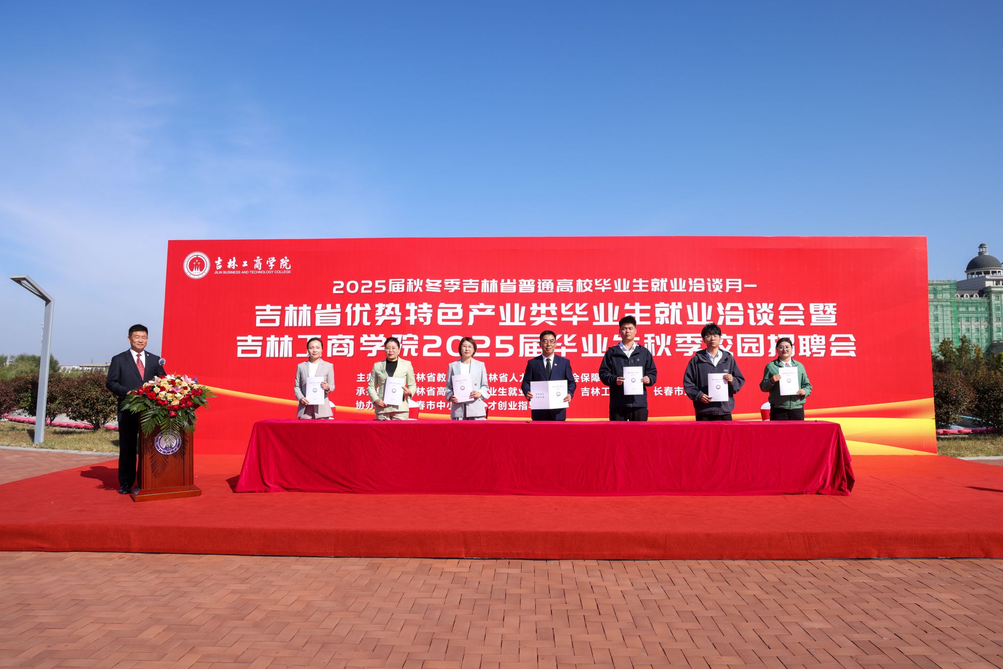 为深入贯彻党中央、国务院就业工作决策部署,落实吉林省委、省政府就业工作要求,服务地方经济发展,推动我校毕业生高质量充分就业,9月24日,由吉林省教育厅、吉林省人力资源和社会保障厅主办,吉林省高等学校毕业生就业指导中心、吉林工商学院和长春市人才服务局承办的吉林省优势特色产业类毕业生就业洽谈会暨吉林工商学院2025届毕业生秋季校园招聘会在学校文化广场举行。