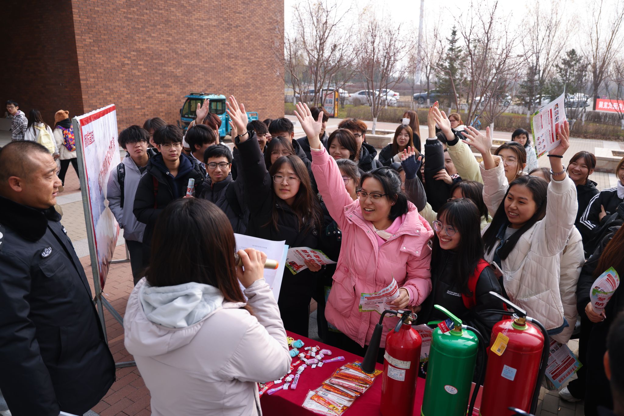 在消防知识问答环节,师生踊跃参与,现场气氛十分热烈,安全保卫处还为参与活动的师生准备了小礼品。