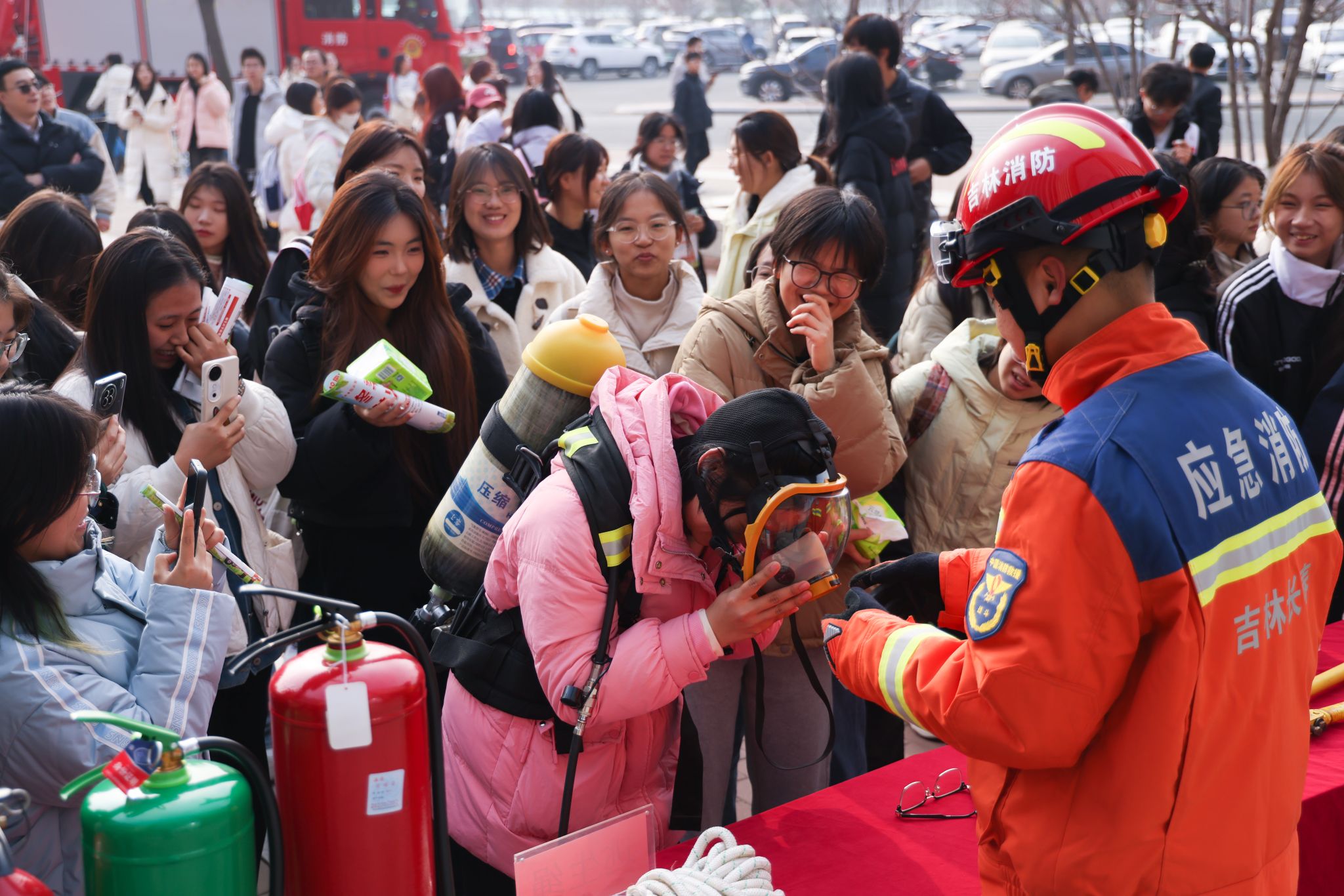 安全保卫处联合九台区卡伦消防救援中队分别在一食堂和二食堂举办了消防器材展示和消防知识问答活动。消防员讲解、示范了灭火器、水带、破拆工具、缓降器等器材的使用方法,师生员工现场进行了实操体验。
