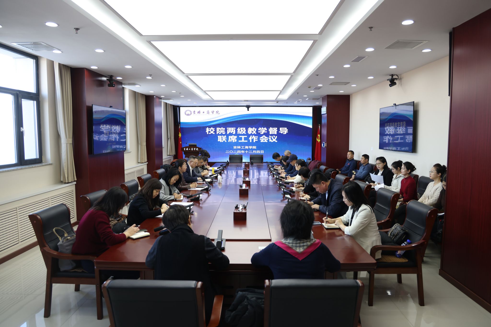 为加强教学督导组织机制建设,充分发挥校院两级教学督导作用,推动校园质量文化建设和教育教学工作高质量发展,12月4日,学校在综合办公楼702会议室召开校院两级教学督导联席工作会。副校长徐文出席会议并讲话,会议由教学质量监控与评价中心主任王维坚主持。