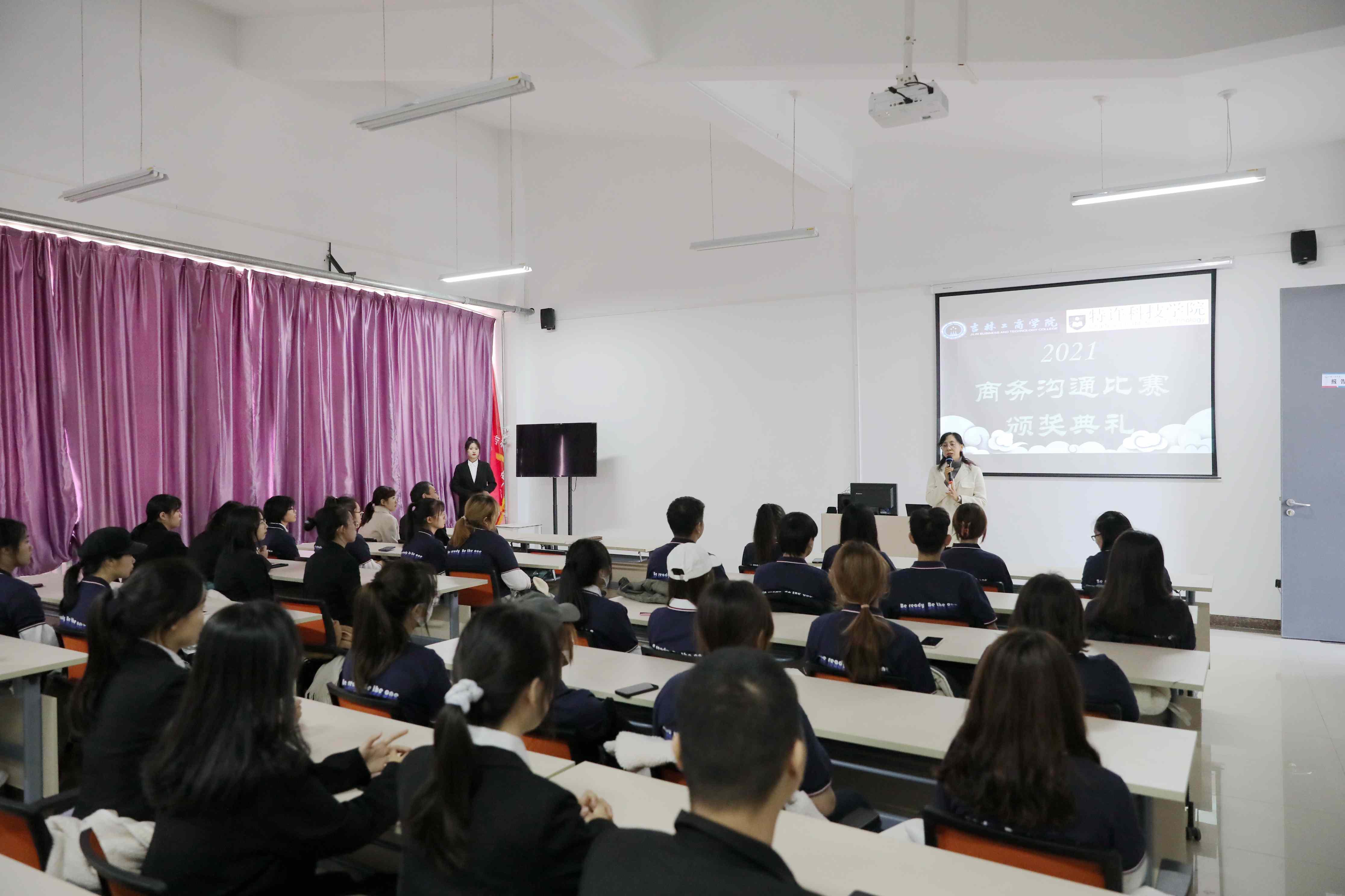 颁奖典礼气氛隆重热烈,新加坡特许科技学院全体教师祝愿吉林工商学院的莘莘学子前程似锦,学业有成。典礼上,参赛师生代表交流了参赛的体会和收获。